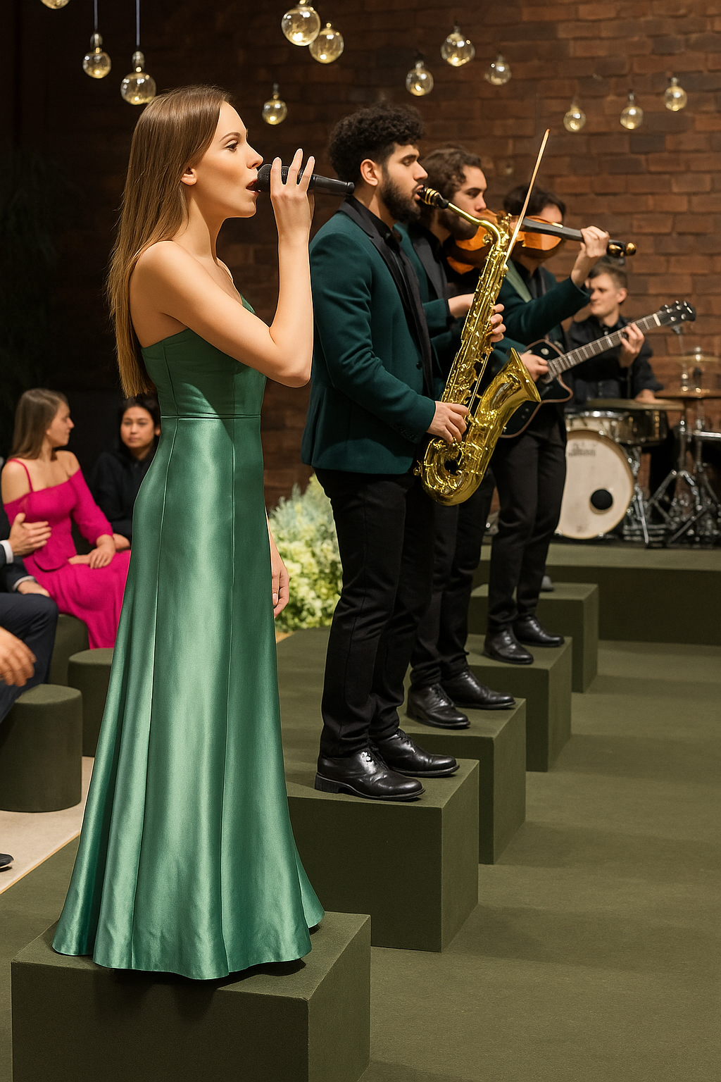 Alte Voci é um formato exclusivo de apresentação musical, onde cada integrante do grupo performa em seu próprio palco individual pequeno (cubo, ou cilindro), criando uma experiência visual e sonora única muito elegante para momentos de jantar, coquetel, receptivo e etc.