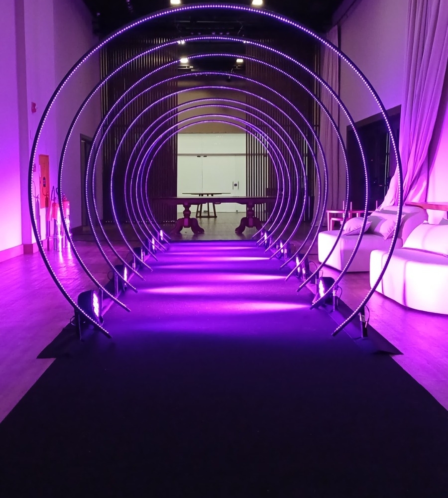 Conjunto de 10 arcos (dependendo do espaço) de ferro com fita de led rgb.