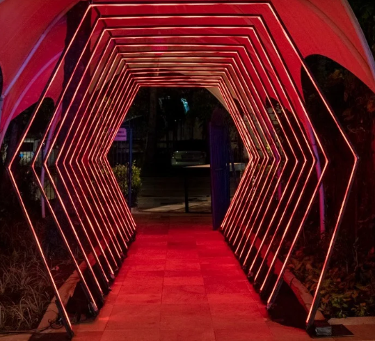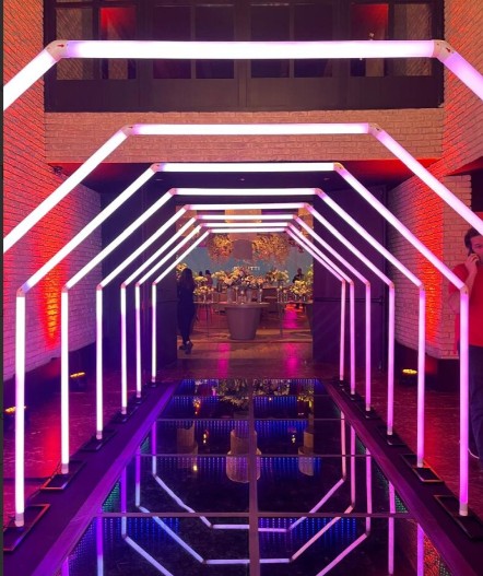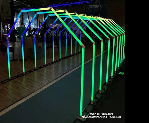 Com mais de 180 cores de efeitos, esse é um produto inovador que irá garantir o sucesso de seu evento, fazendo com que seja memorável e único. Conjunto de 10 arcos (dependendo do espaço) de tubo leitoso com fita de led rgb.