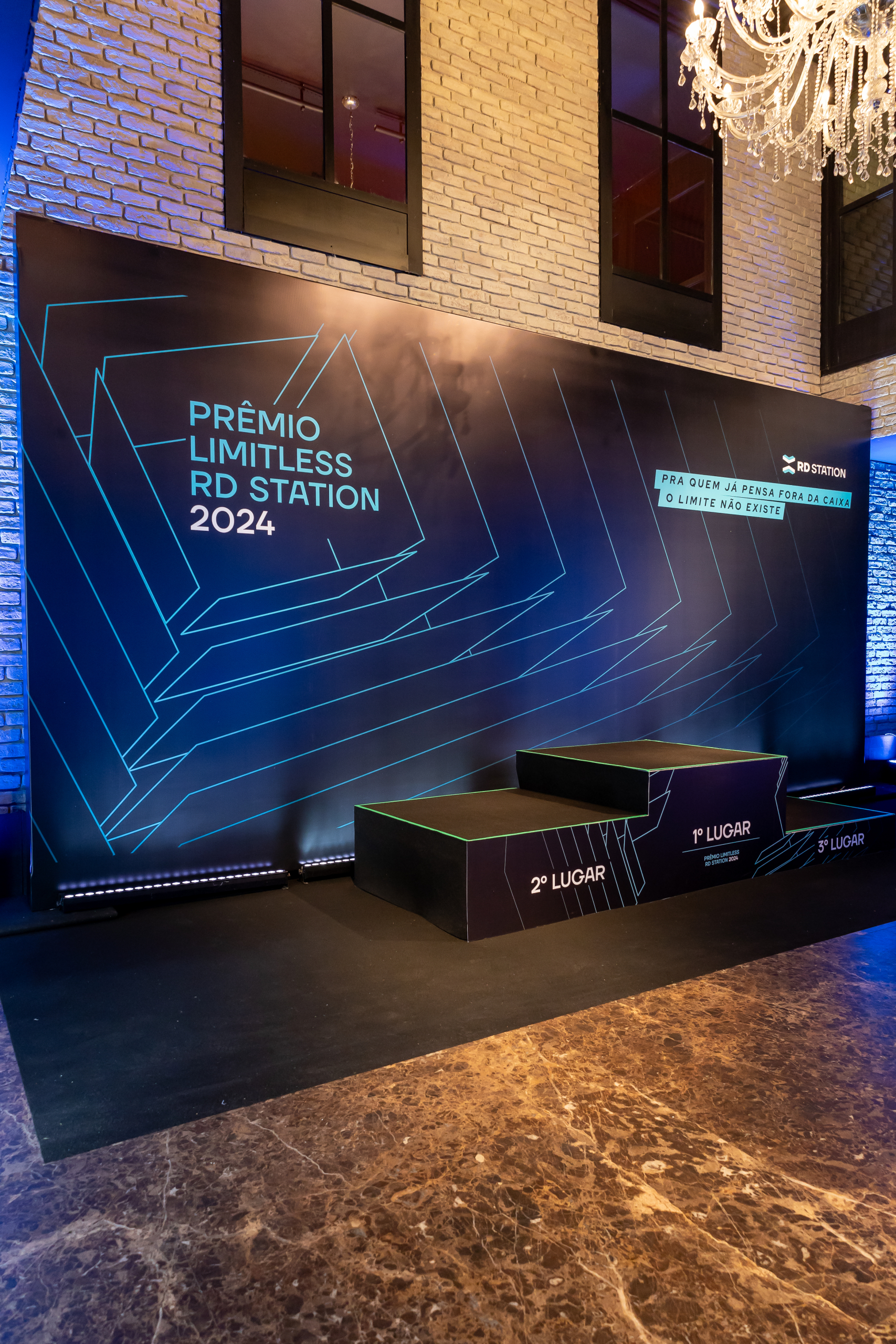 Backdrop personalizado com pódio para premiação