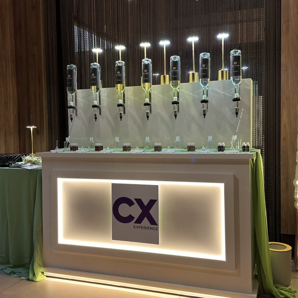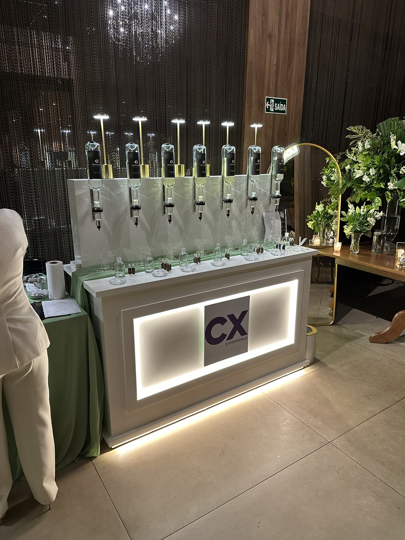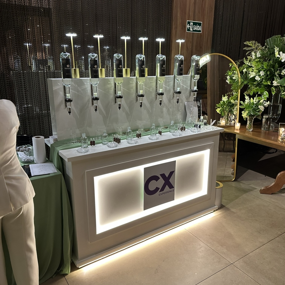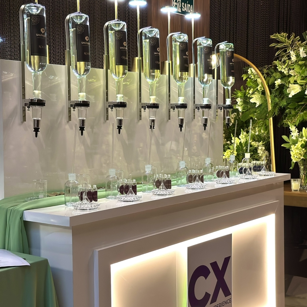 No Bar Olfativo CX, cada convidado mergulha em um universo de aromas e personalização. É possível escolher entre diversas essências, perfumes — ou até criar uma fragrância exclusiva especialmente para o seu evento.