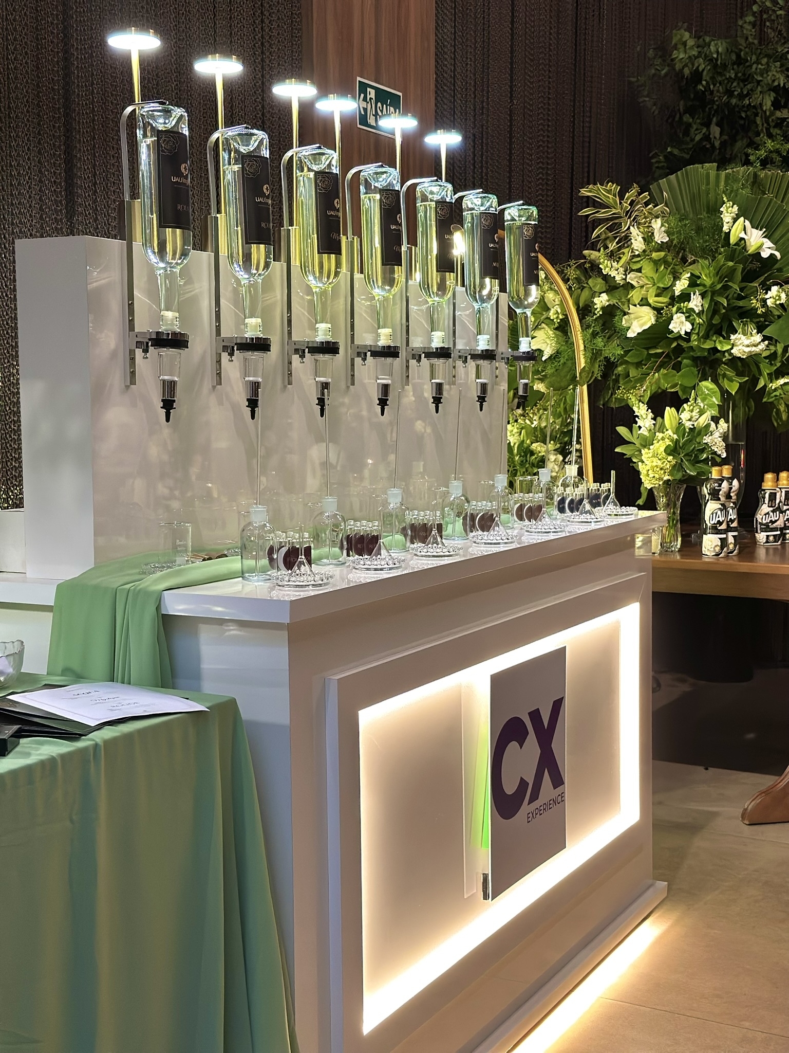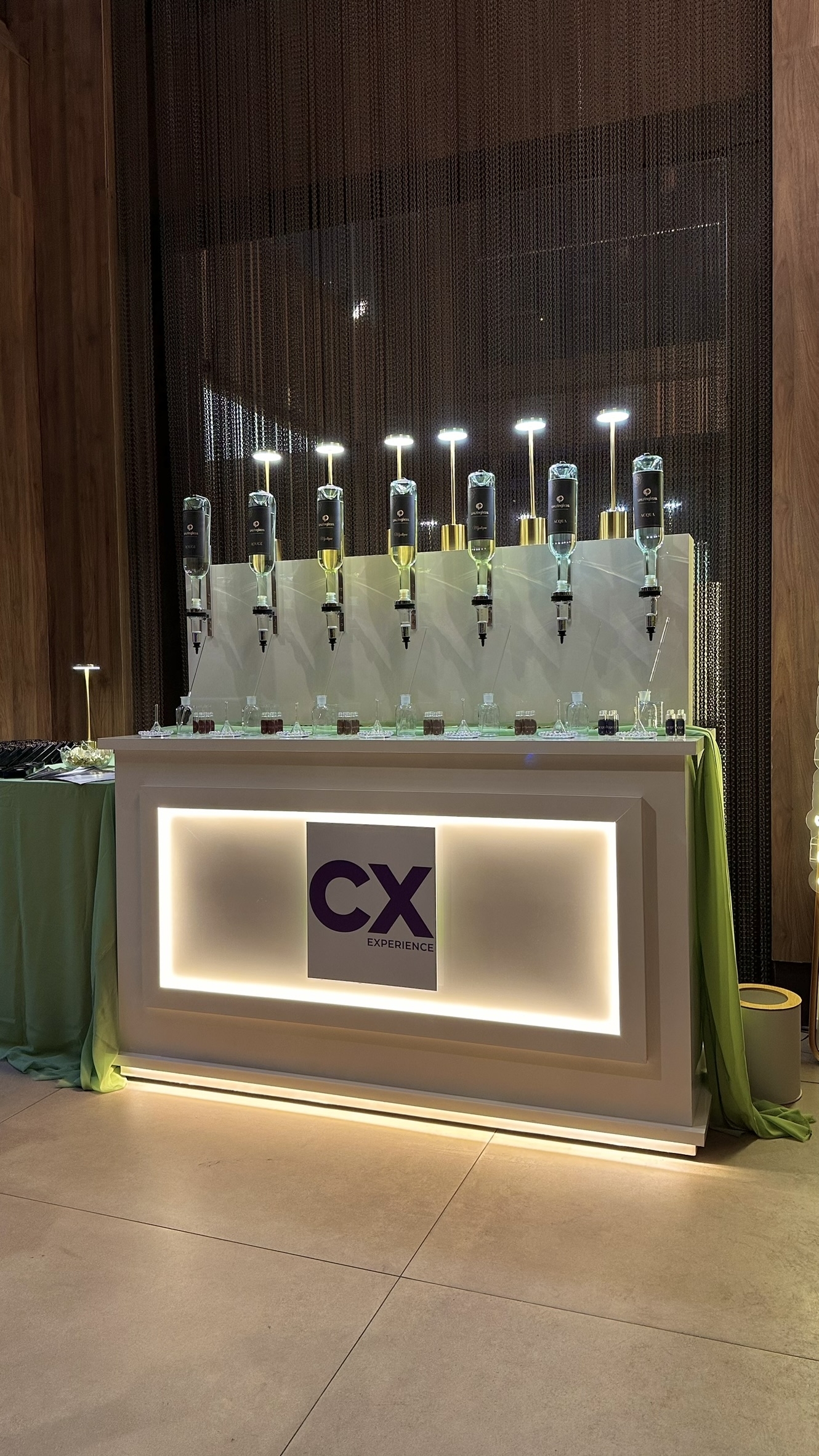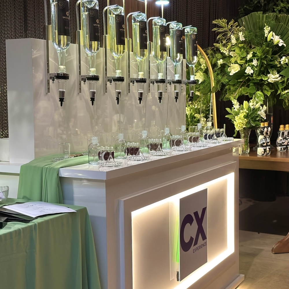 No Bar Olfativo CX, cada convidado mergulha em um universo de aromas e personalização. É possível escolher entre diversas essências, perfumes — ou até criar uma fragrância exclusiva especialmente para o seu evento.