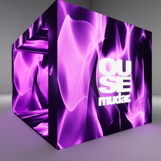 Caixa de LED para experiência dos convidados medindo 4m x 4m com tudo em LED.