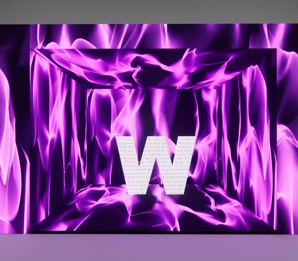 Piso, Paredes, Teto e Testeira frontal em LED com letra caixa gigante (ou logo) no meio para assinatura dos convidados com canetas Posca®.