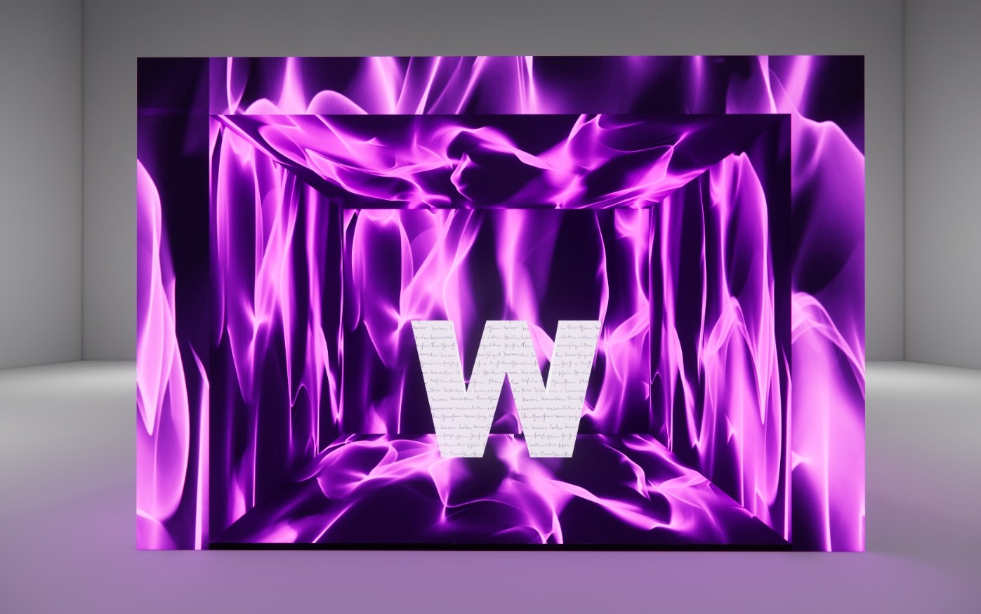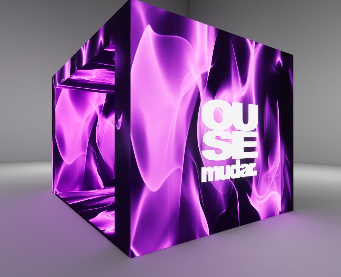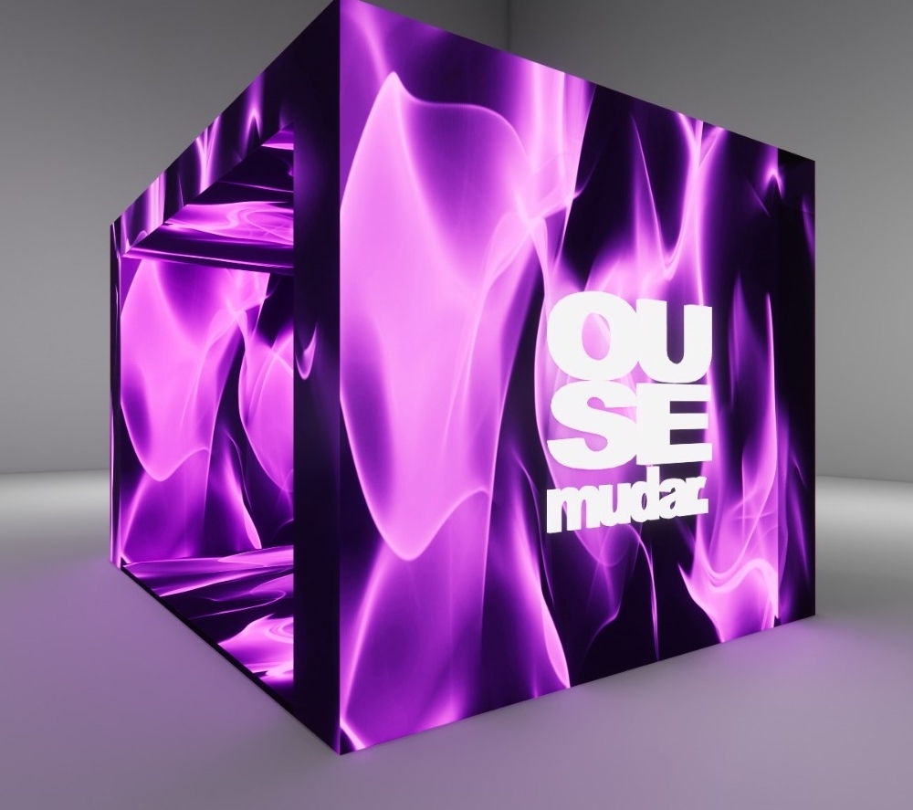 Caixa de LED para experiência dos convidados medindo 4m x 4m com tudo em LED.