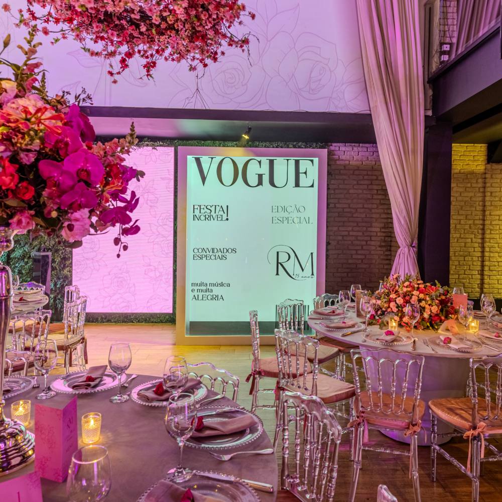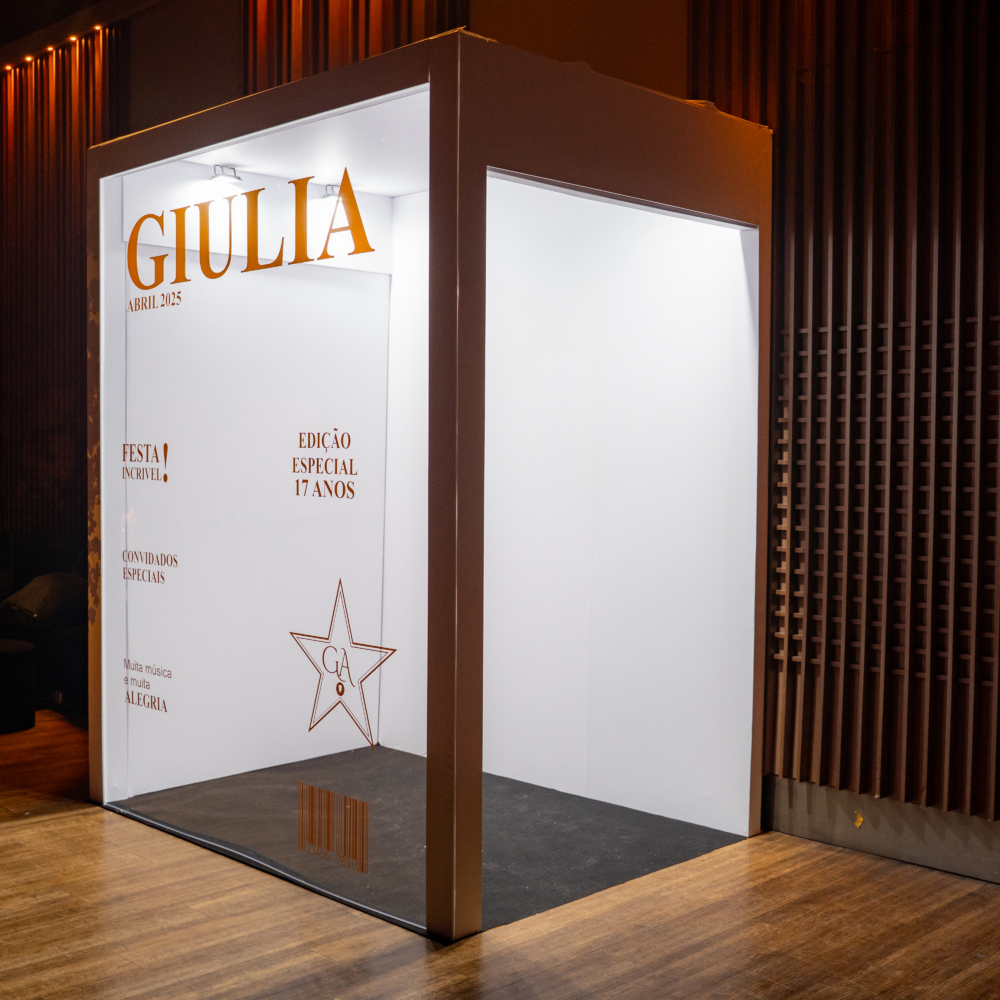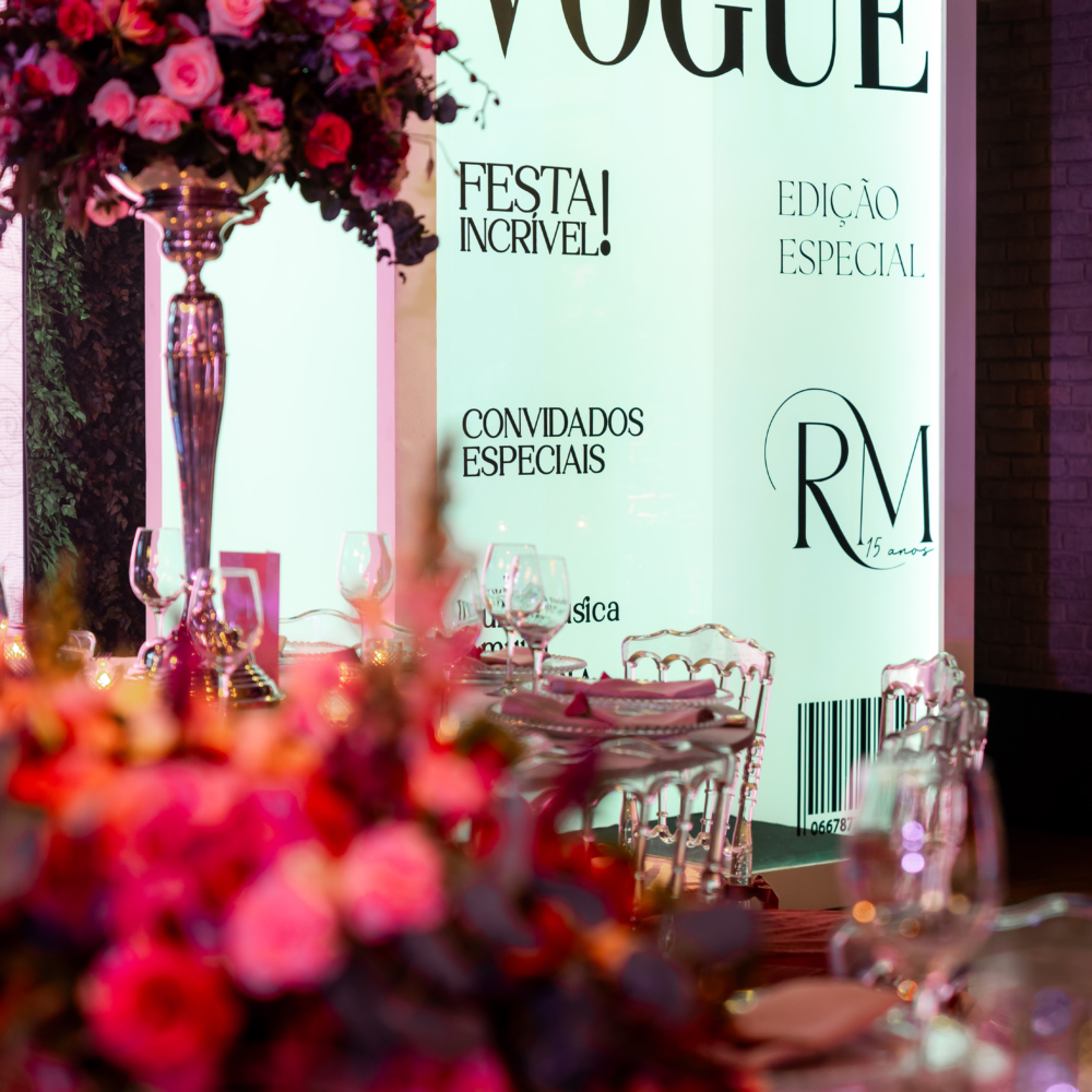 | Cenográfia construída em caixa gigante com capa da Vogue transparente para que a anfitriã / anfitrião da festa entre dentro da capa da revista e faça uma foto, vídeos e interaja com essa cenografia. Além de um atrativo visual maravilhoso para a festa, os convidados adoram a interação com essa cenografia e cria um momento muito marcante e especial.Caixa cenografada construída com estrutura resistente, porta de acesso e iluminação interna. Personalização: palavra VOGUE é fixa e os demais textos são editáveis e personalizáveis com detalhes sobre a festa e sobre a anfitriã / anfitrião. |