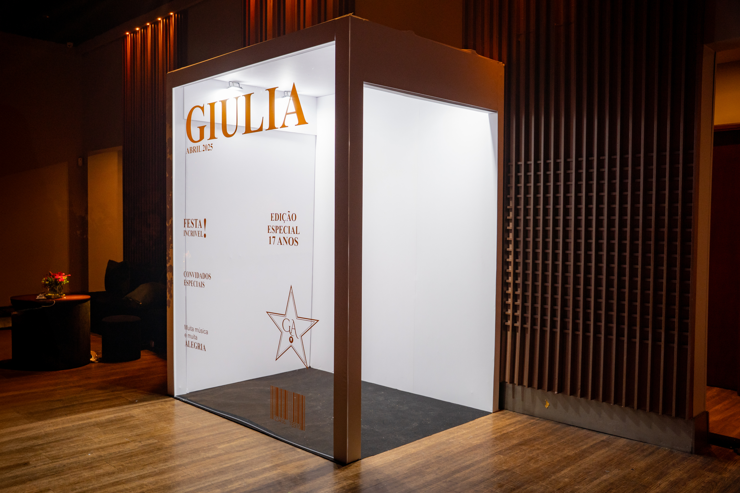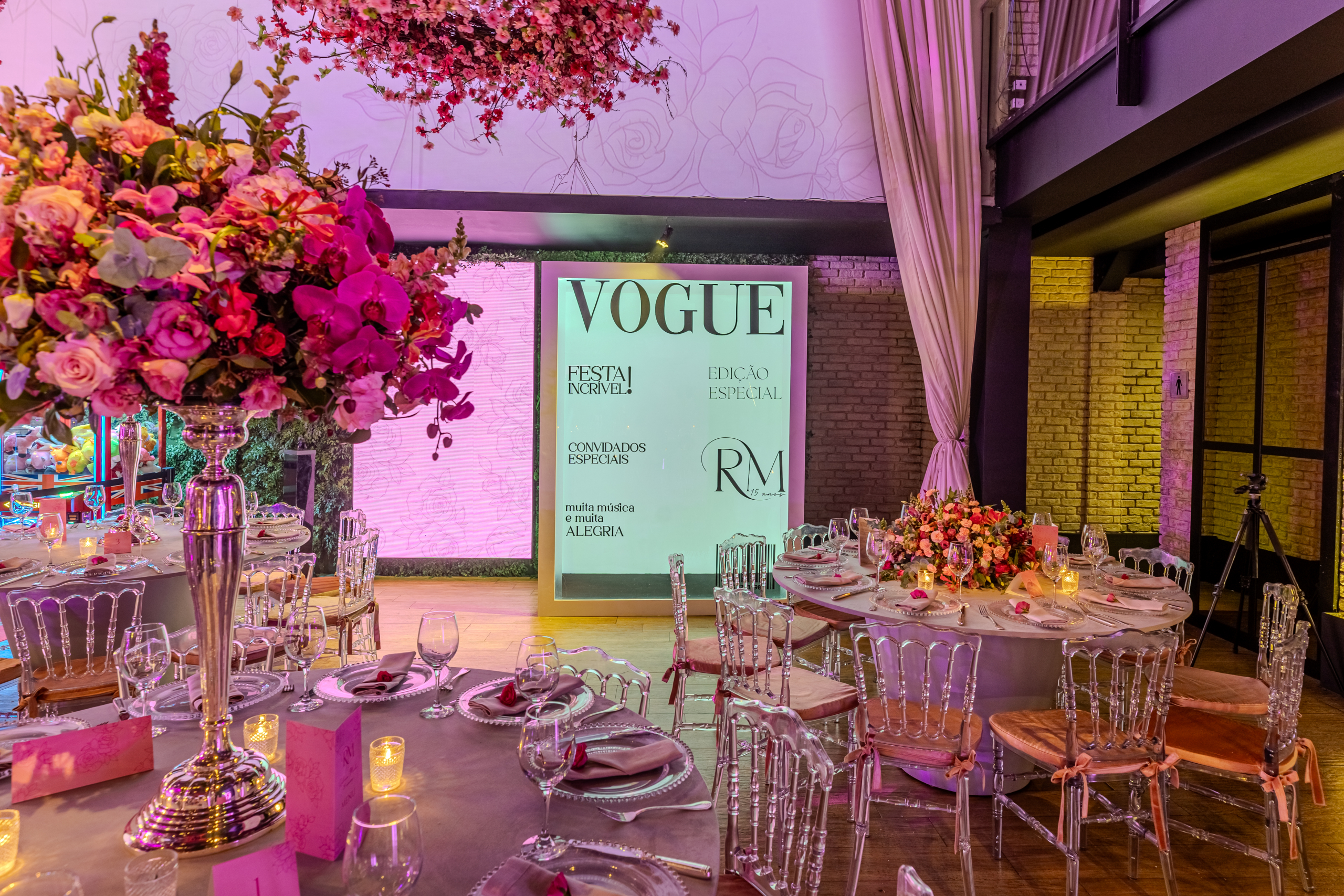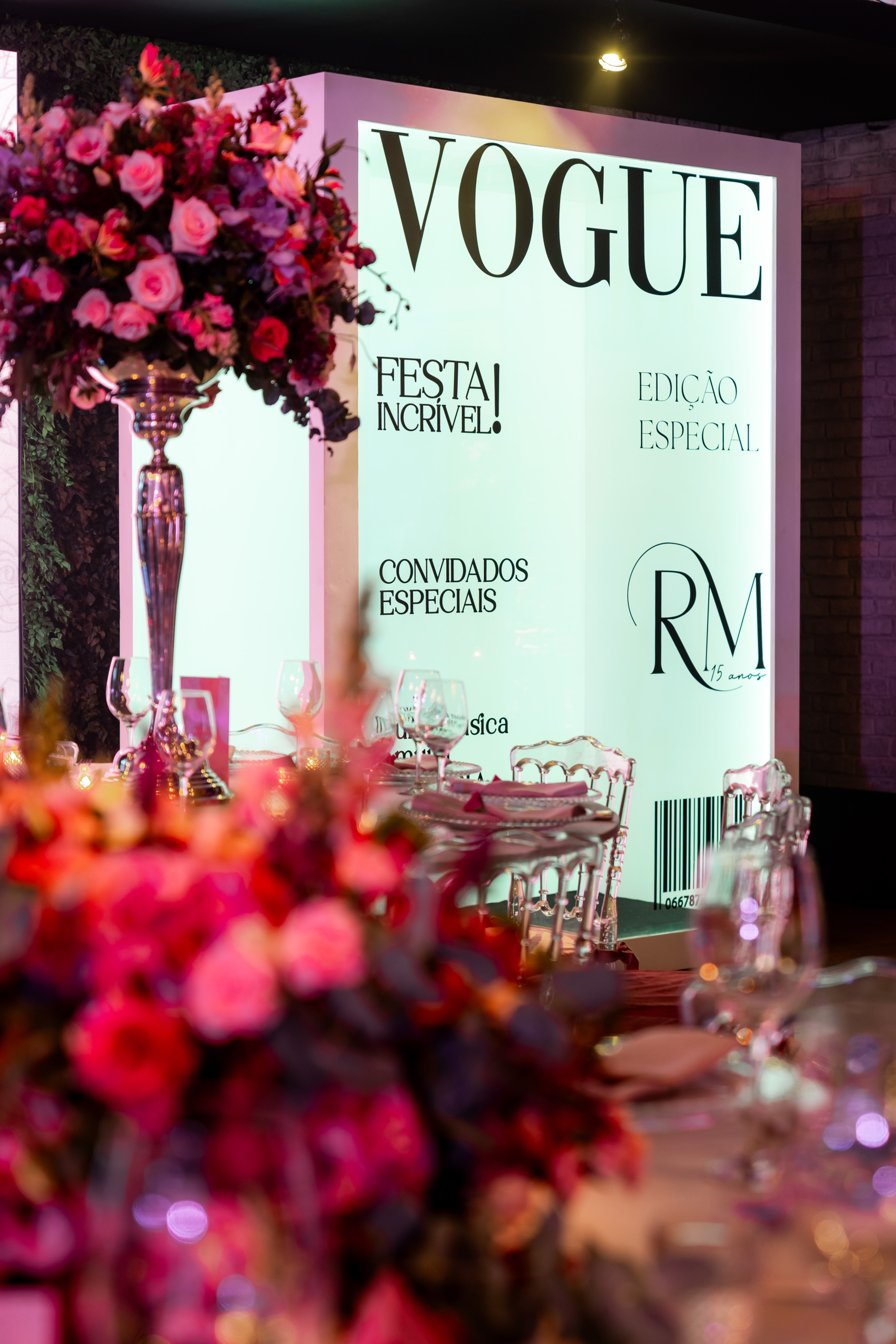 | Cenográfia construída em caixa gigante com capa da Vogue transparente para que a anfitriã / anfitrião da festa entre dentro da capa da revista e faça uma foto, vídeos e interaja com essa cenografia. Além de um atrativo visual maravilhoso para a festa, os convidados adoram a interação com essa cenografia e cria um momento muito marcante e especial.Caixa cenografada construída com estrutura resistente, porta de acesso e iluminação interna. Personalização: palavra VOGUE é fixa e os demais textos são editáveis e personalizáveis com detalhes sobre a festa e sobre a anfitriã / anfitrião. |