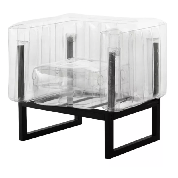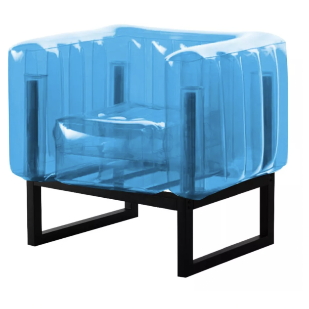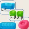 Descrição: Lounge composto por 1 sofá de 2 lugares colorido inflado, 2 poltronas coloridas infladas e 2 pufes inflados. Itens coloridos com estruturas metálicas de sustentação e acabamento resistente em plástico TPU específico para esse tipo de cenografia de mobília. Incluso logística e operação.