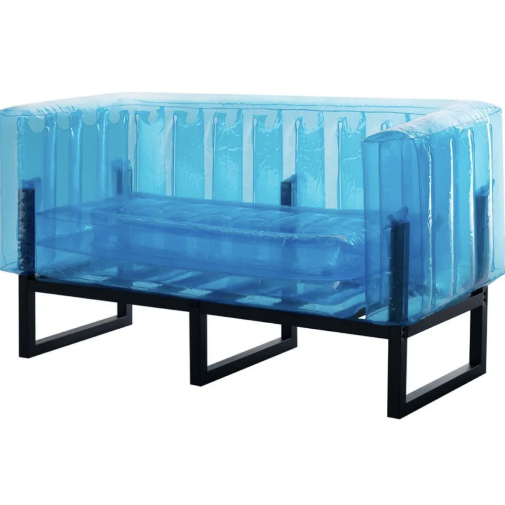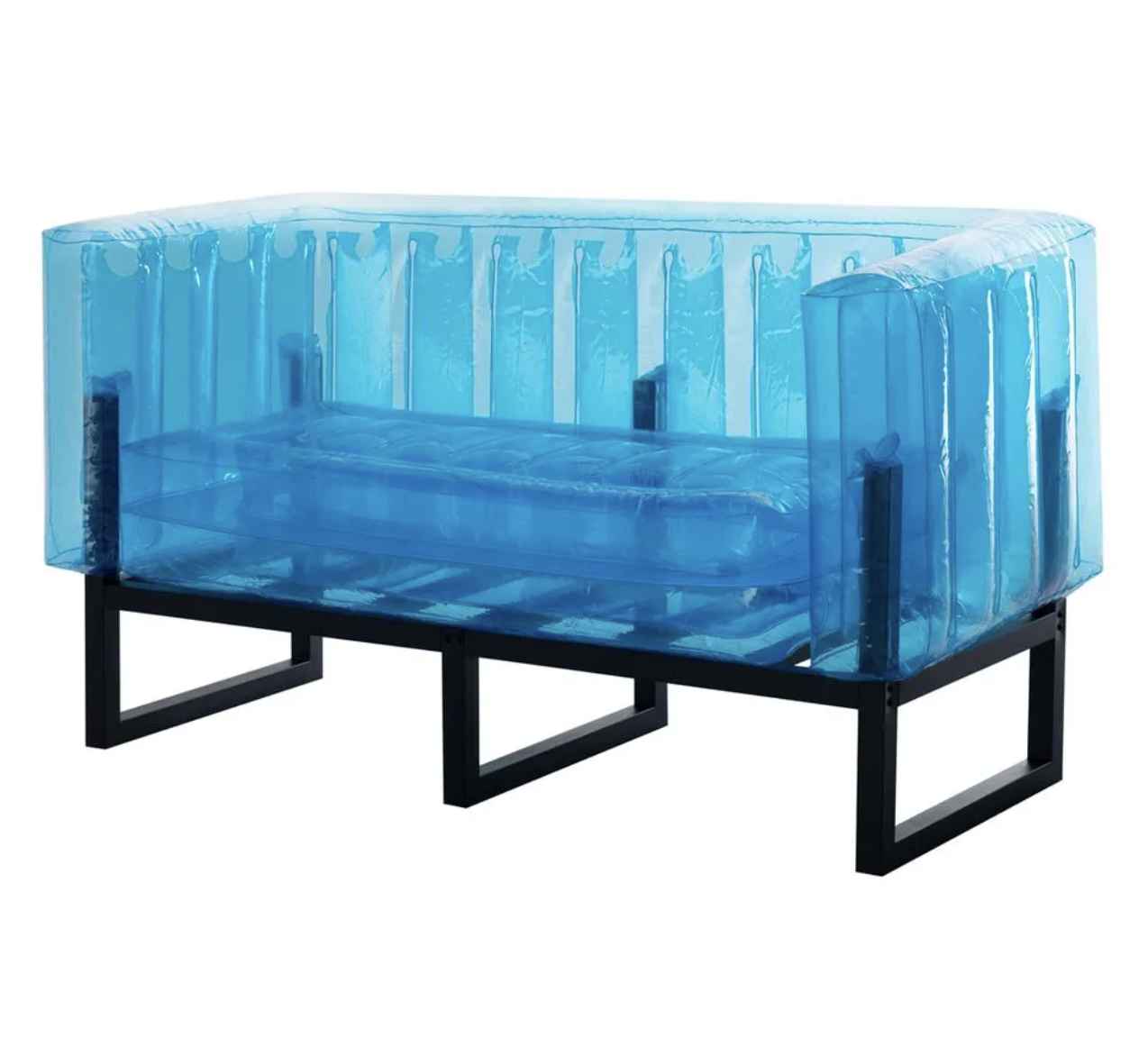 Descrição: Lounge composto por 1 sofá de 2 lugares colorido inflado, 2 poltronas coloridas infladas e 2 pufes inflados. Itens coloridos com estruturas metálicas de sustentação e acabamento resistente em plástico TPU específico para esse tipo de cenografia de mobília. Incluso logística e operação.