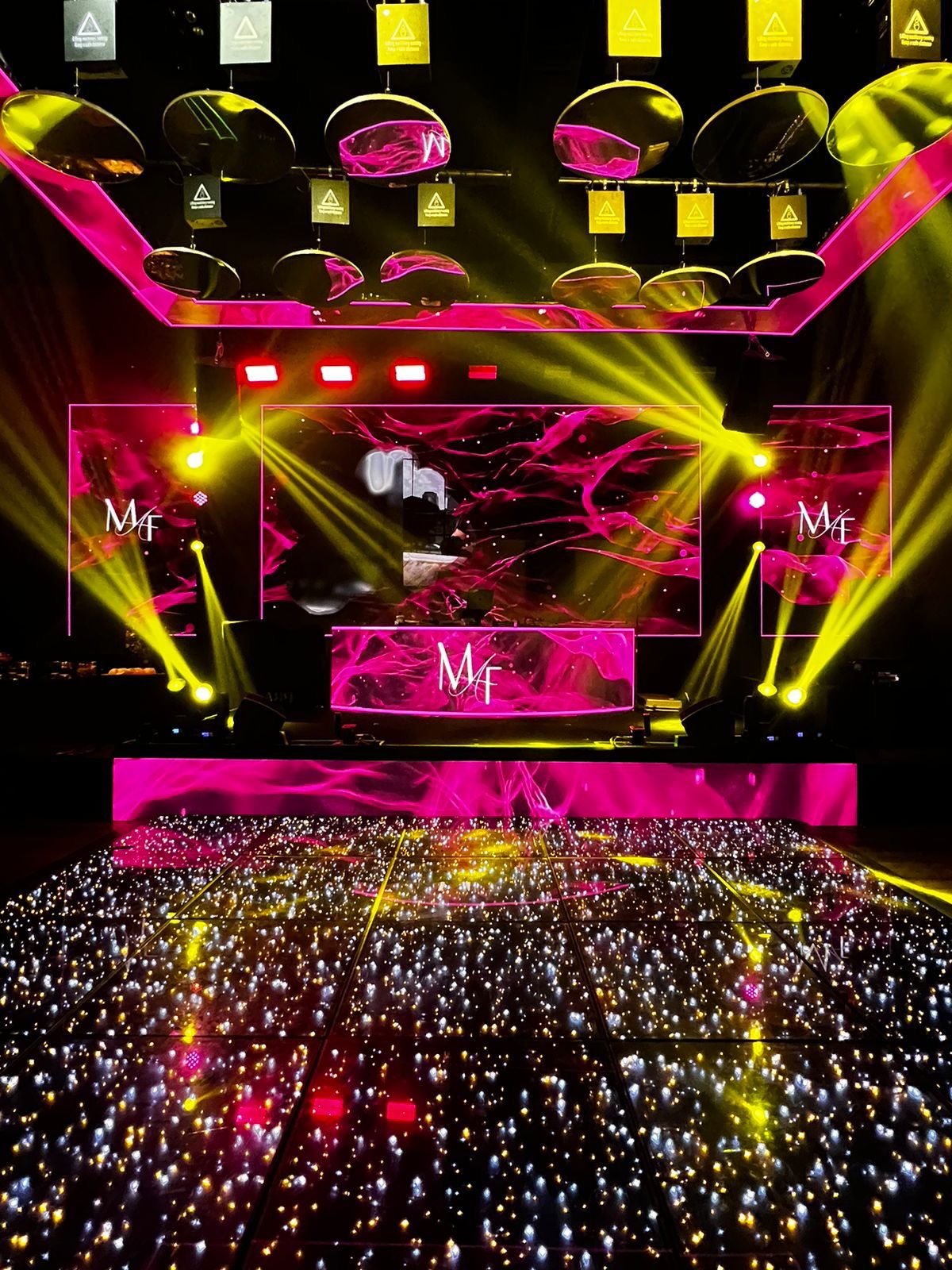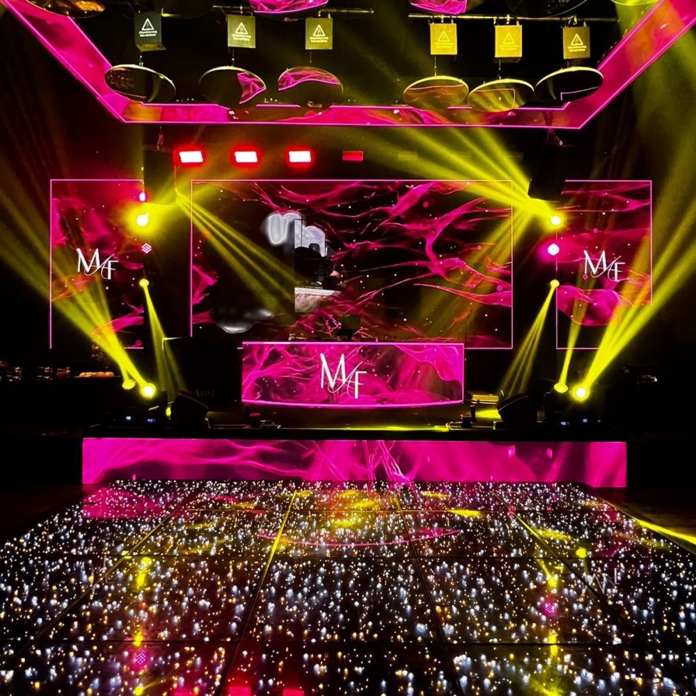 Um show de luzes impressionante com discos espelhados de LED que se movem e mudam de cor, criando uma experiência visual dinâmica e envolvente que transforma qualquer evento, elevando-o a um nível de sofisticação e diversão.