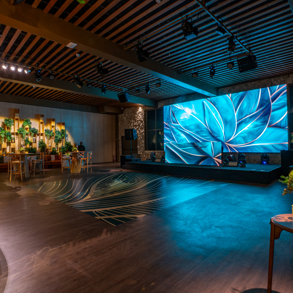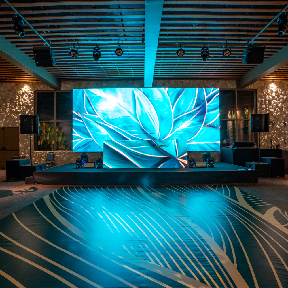 A energia da pista ganha vida com uma iluminação LED cênica pensada para DJs. Cada pulsar da luz acompanha o ritmo da batida, criando uma experiência imersiva e vibrante. O projeto é totalmente personalizado, combinando cores, efeitos e sincronização para transformar cada apresentação em um espetáculo visual único.