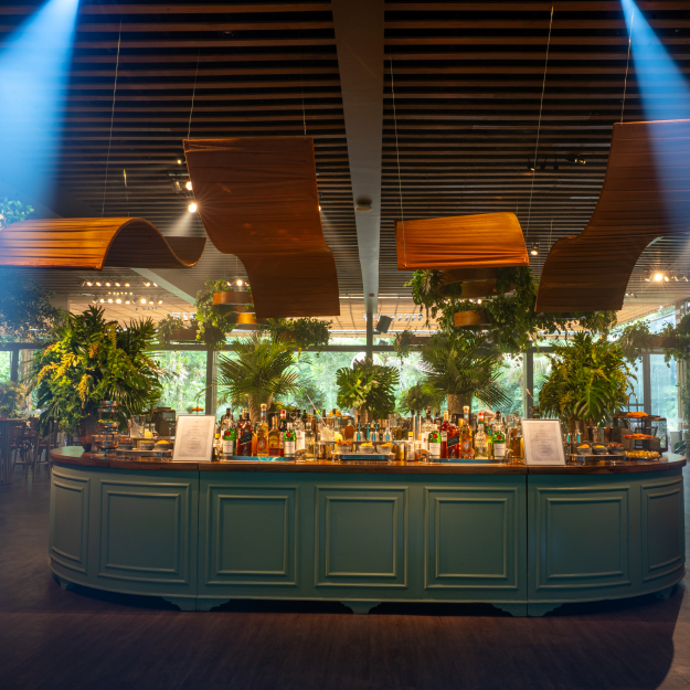 Bar premium feito de LED com conteúdo em vídeo animado da bebida oferecida nessa ação, como Lillet ou Gins, Vinhos, espumantes, outras bebidas, etc