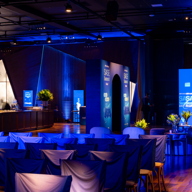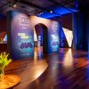 Pórtico cenográfico de entrada dupla face com comunicação visual. Acabamento Premium feito em estrutura cenográfica autoportante e duplaface.