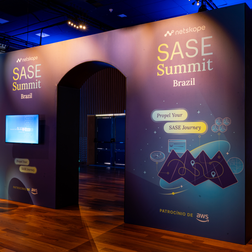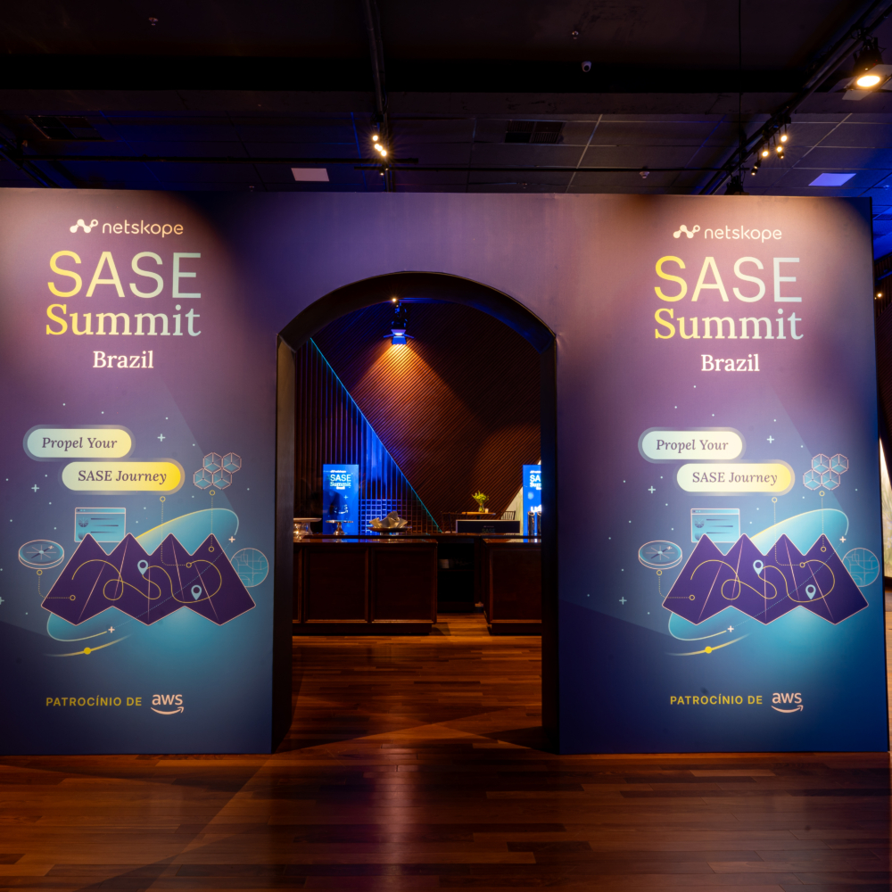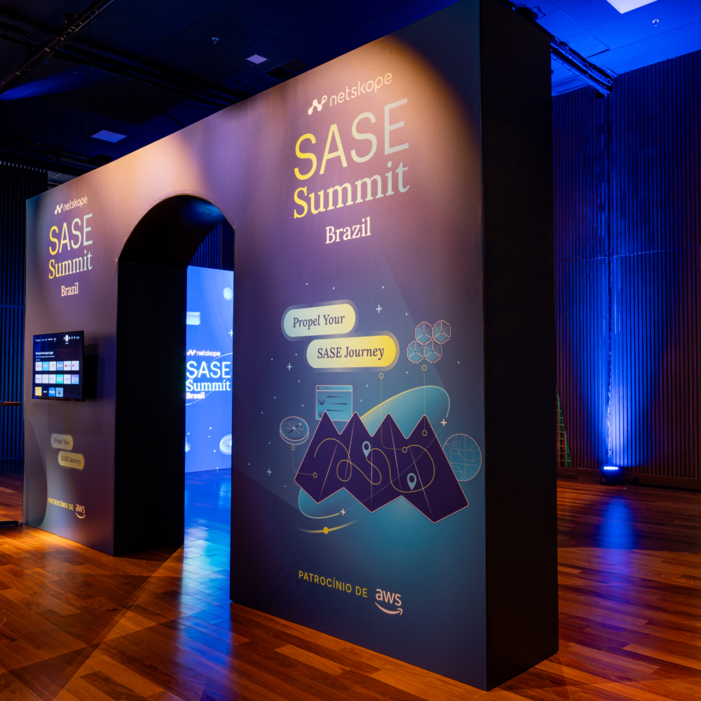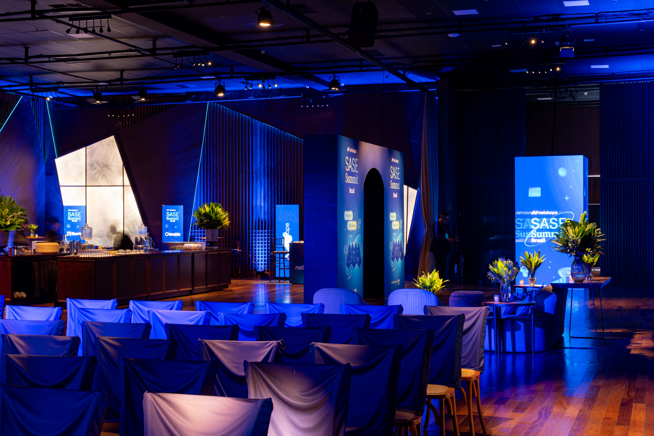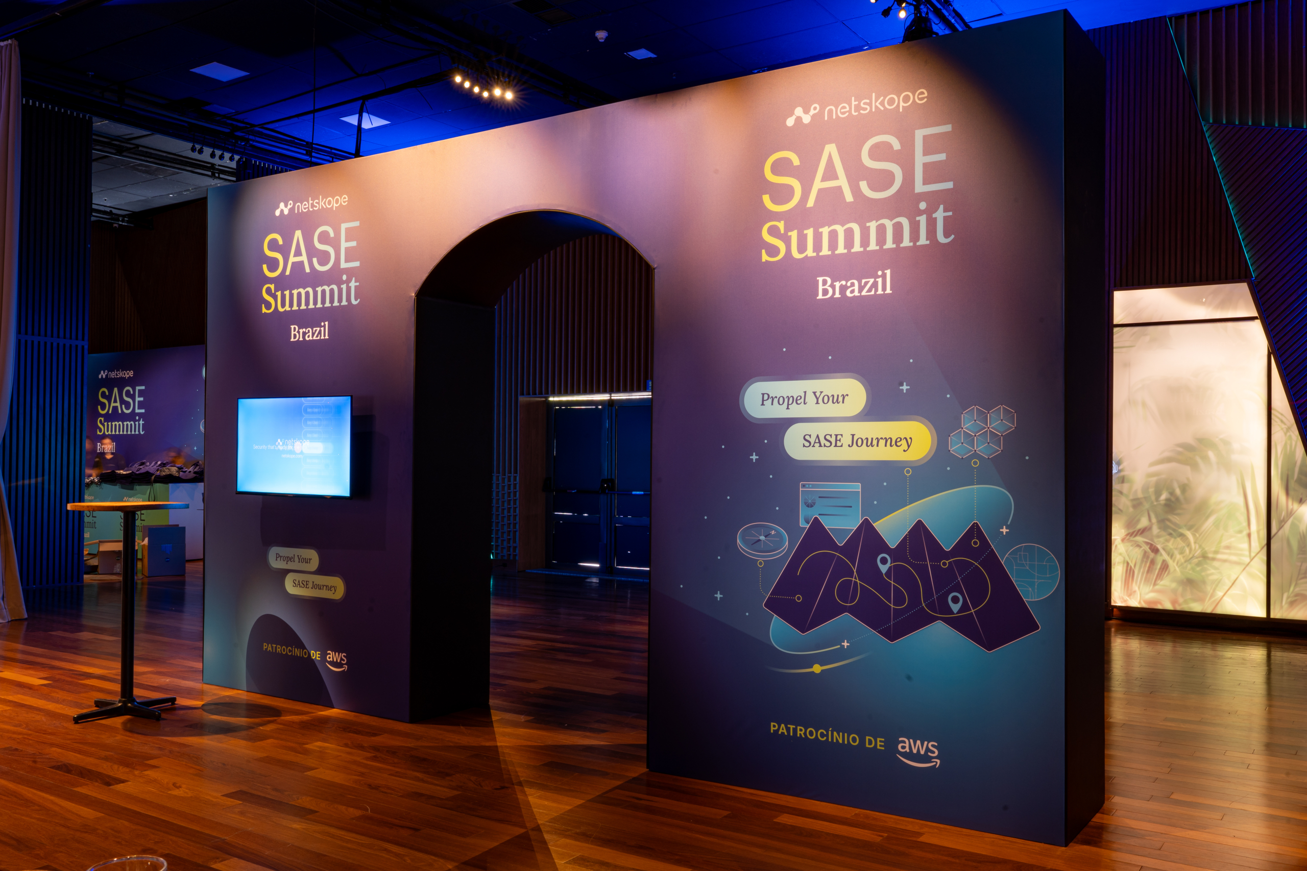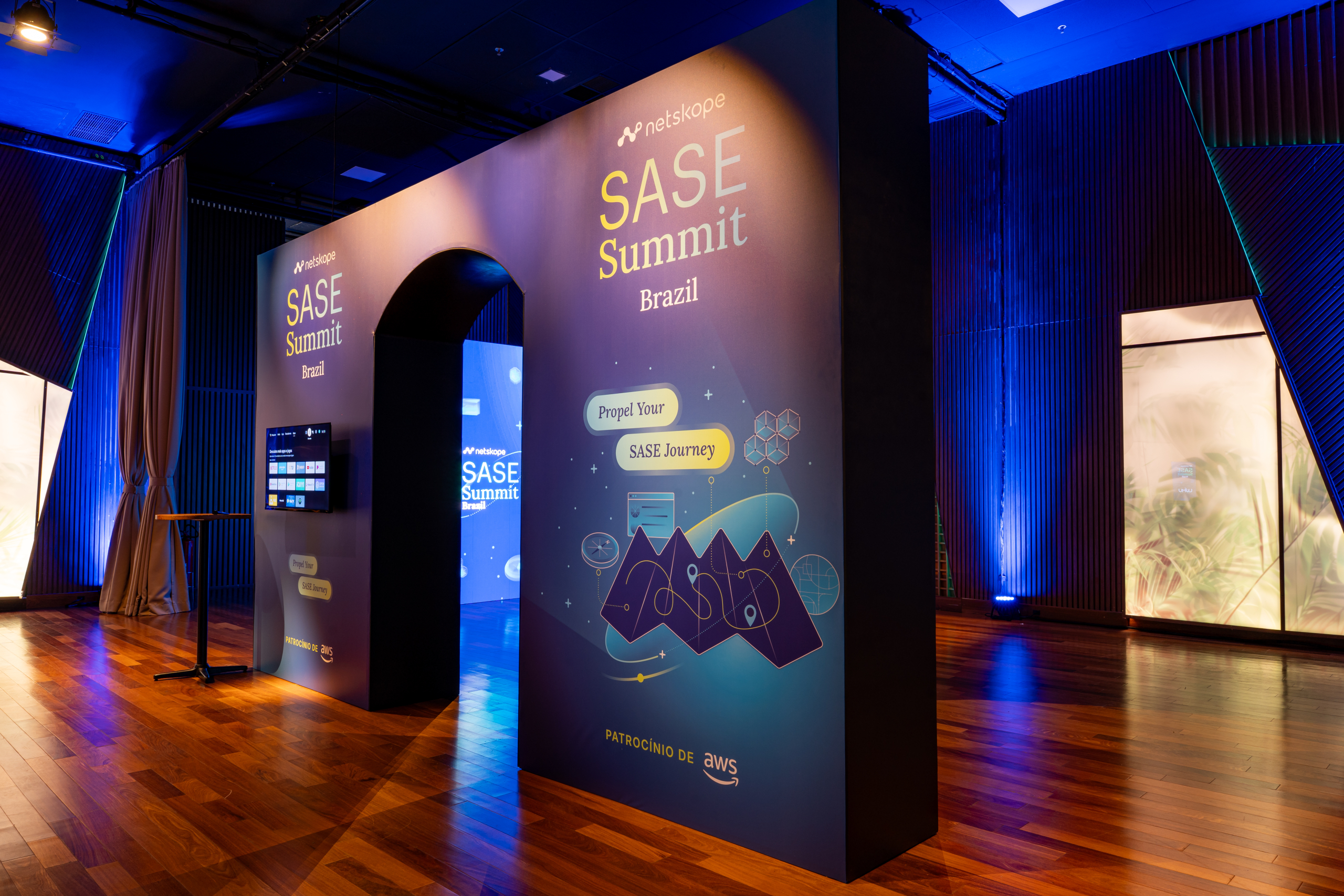 Pórtico cenográfico de entrada dupla face com comunicação visual. Acabamento Premium feito em estrutura cenográfica autoportante e duplaface.