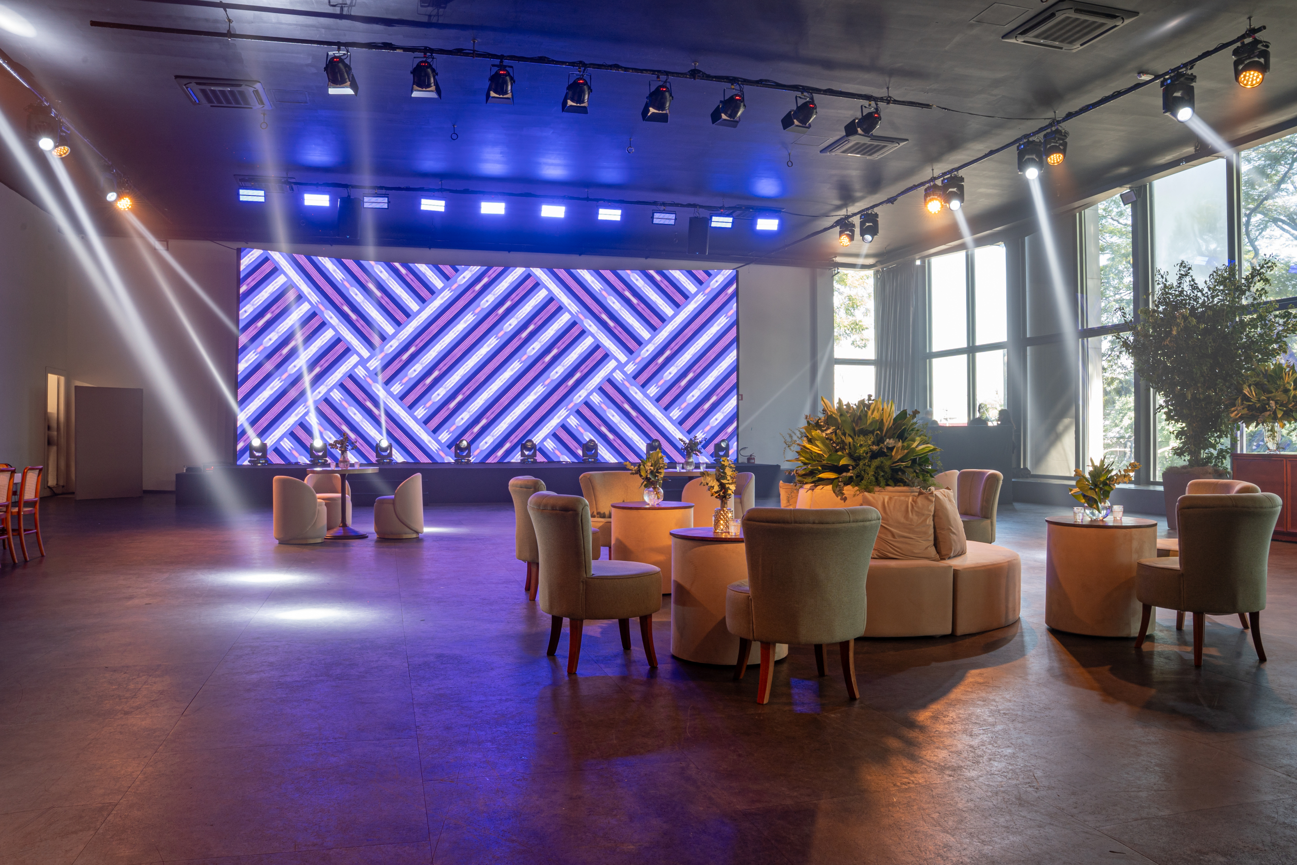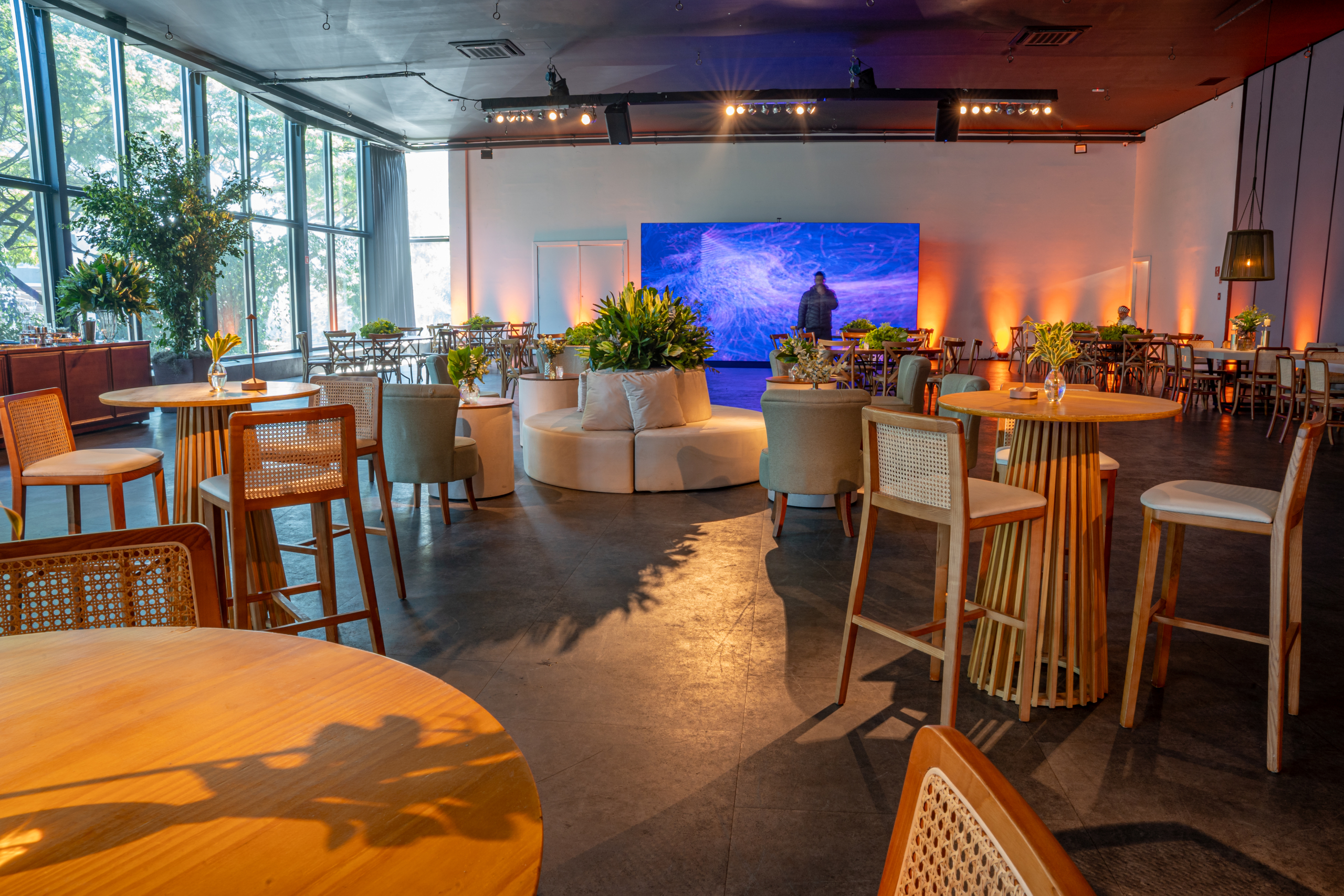 Projeto de audiovisual e cenografia para evento corporativo de apresentação de produto – Casa Bisutti UM Rooftop.