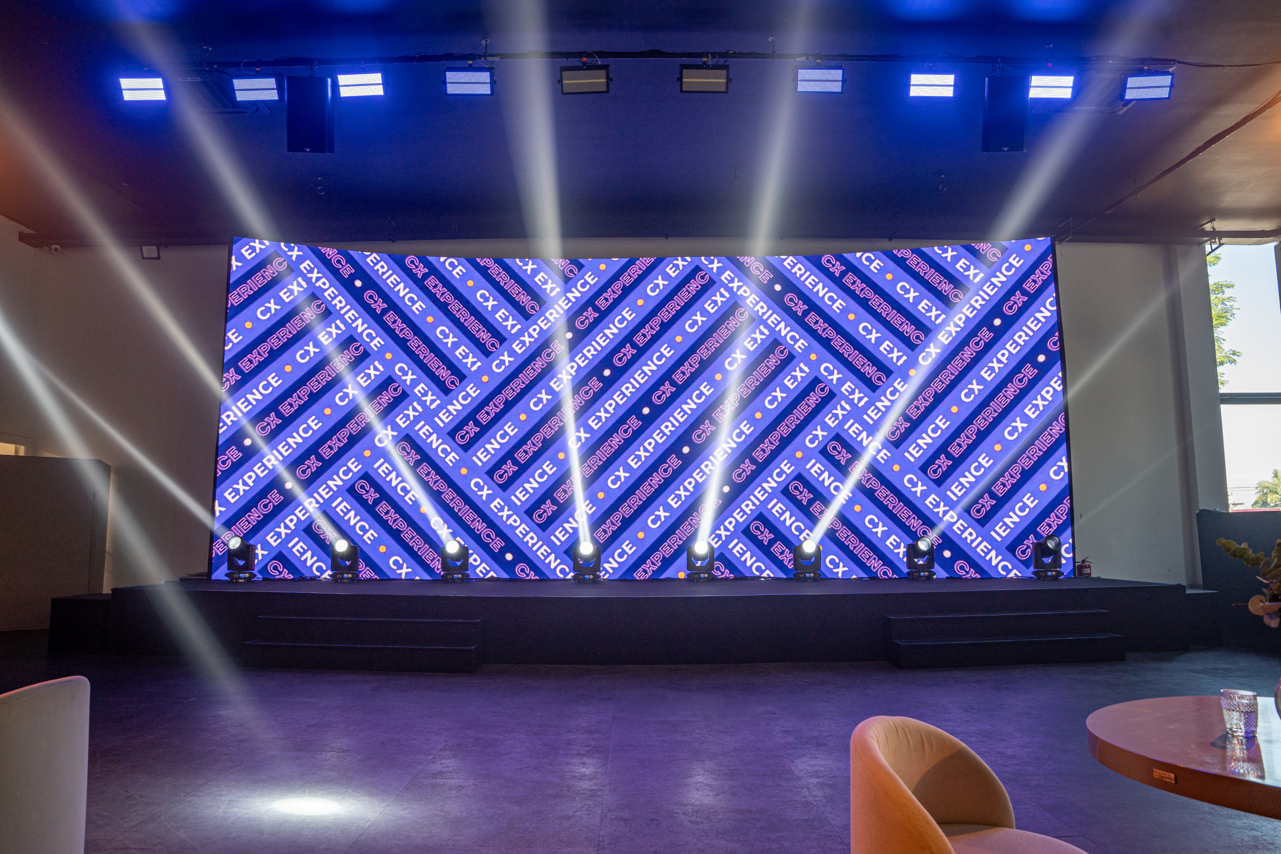 Projeto de audiovisual e cenografia para evento de apresentação de produto.