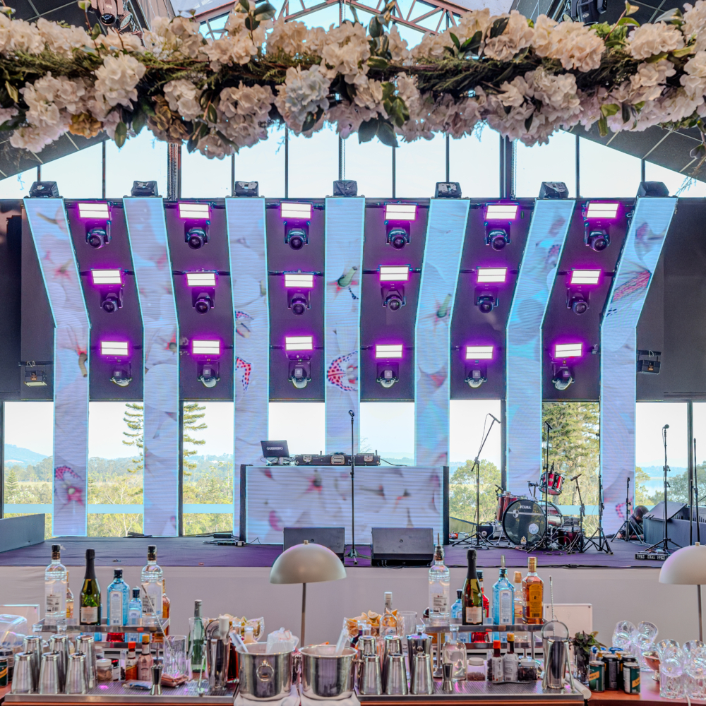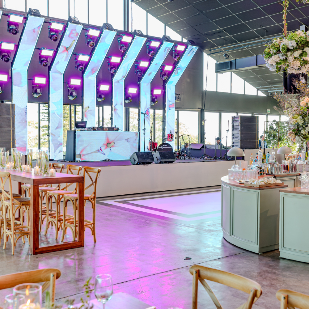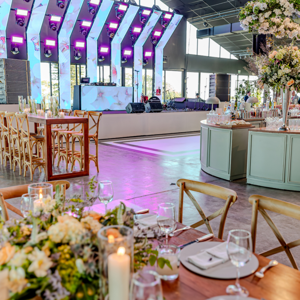 Projeto de audiovisual e cenografia para evento de casamento – Casa Bisutti Lake Paradise.