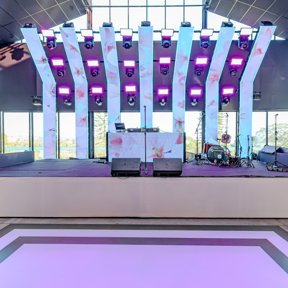 Projeto de audiovisual e cenografia para evento corporativo.