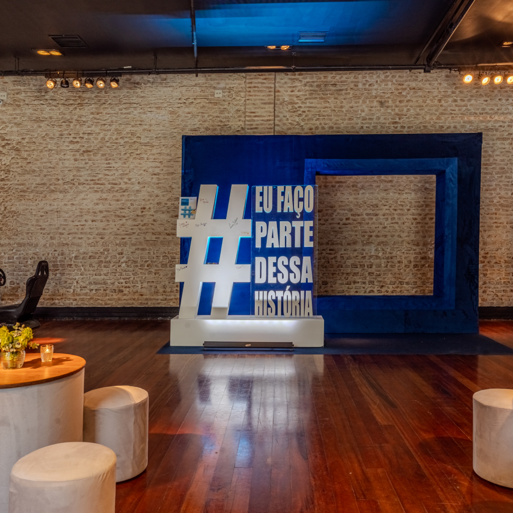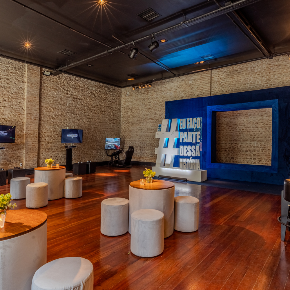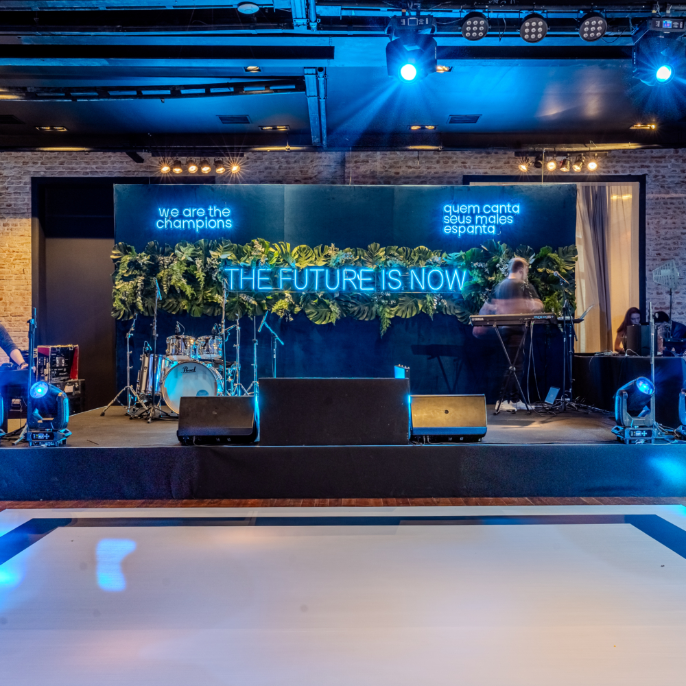 Projeto de audiovisual e cenografia para evento de apresentação de produto.