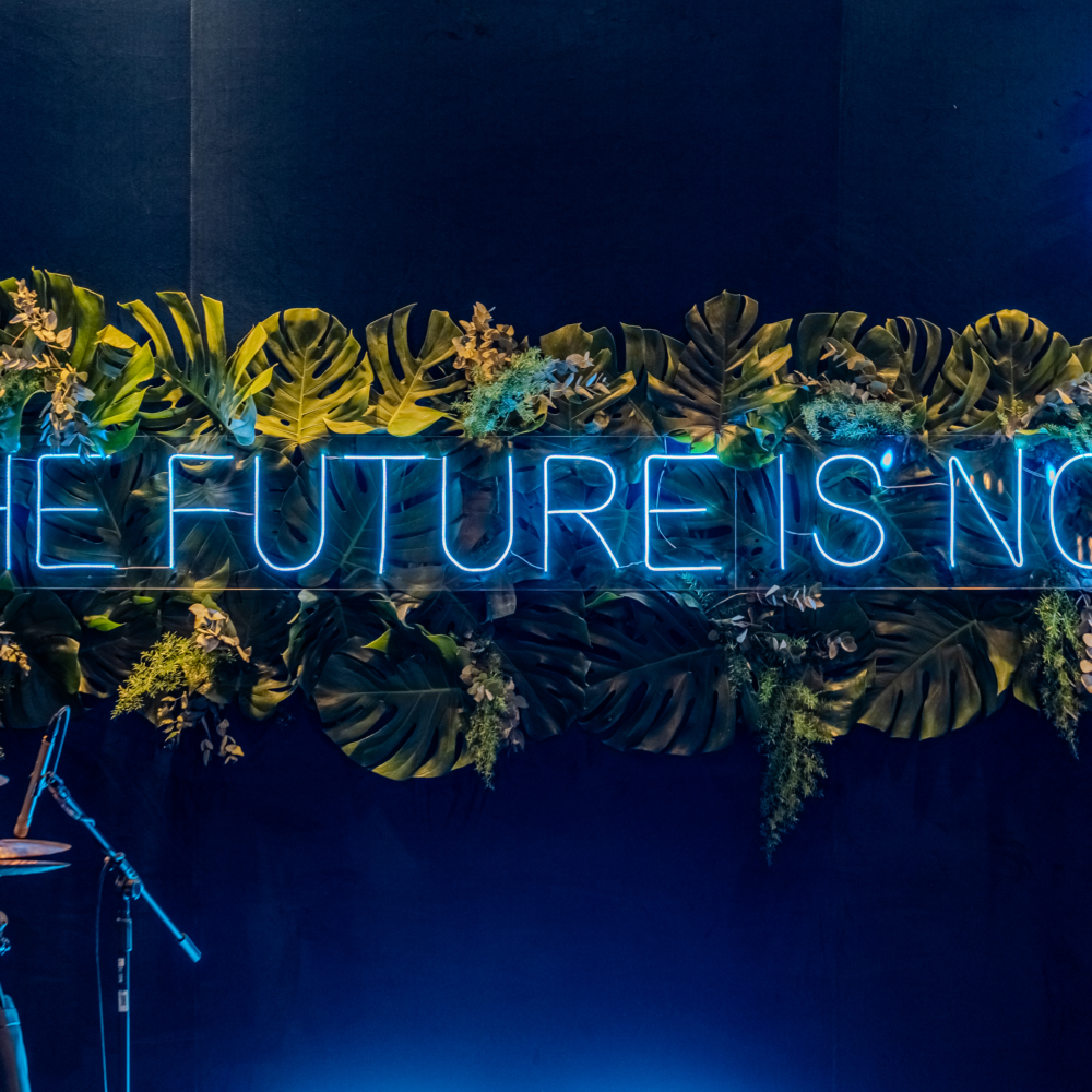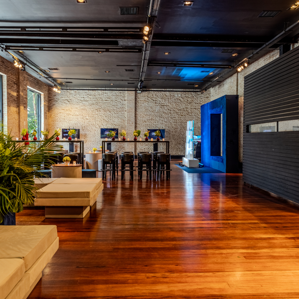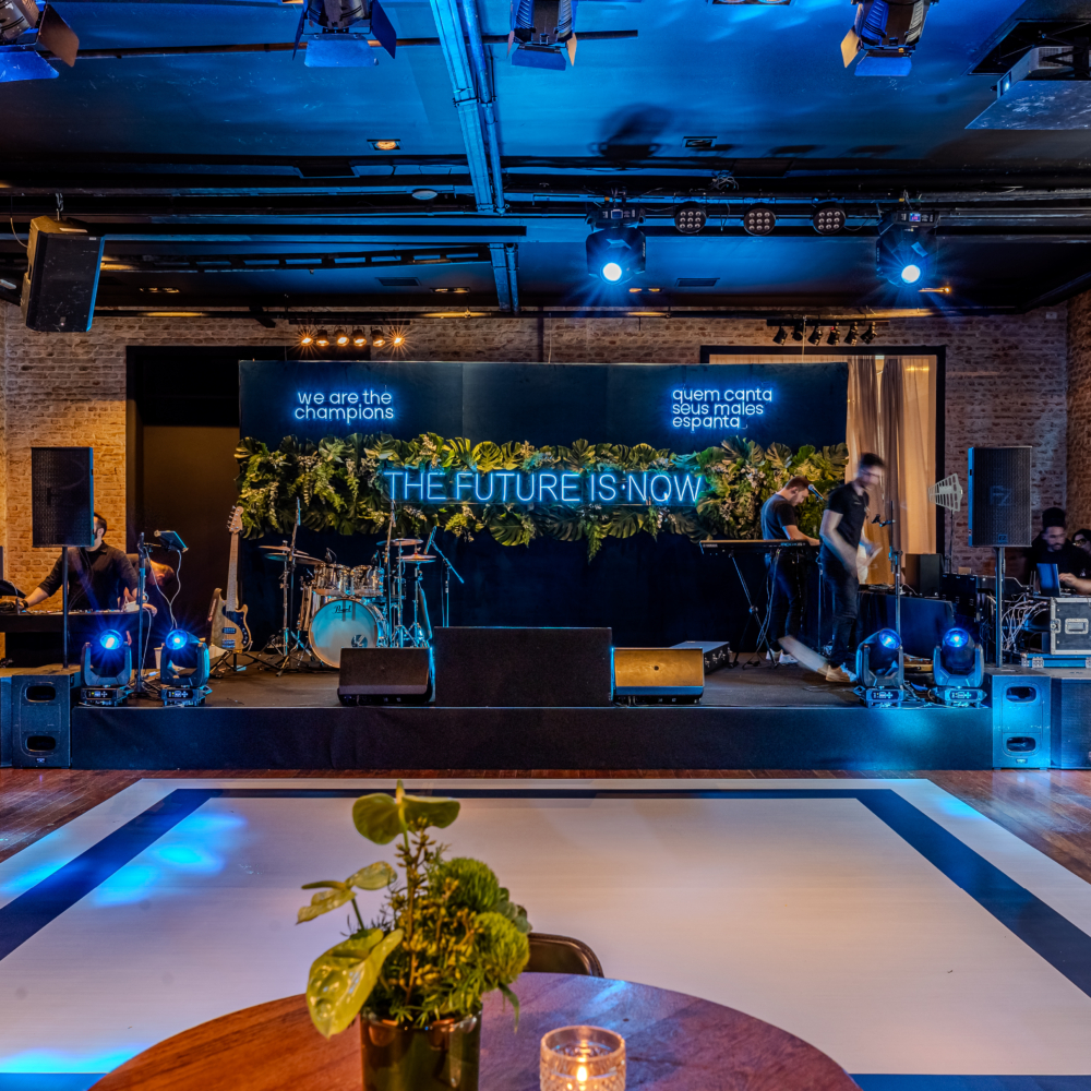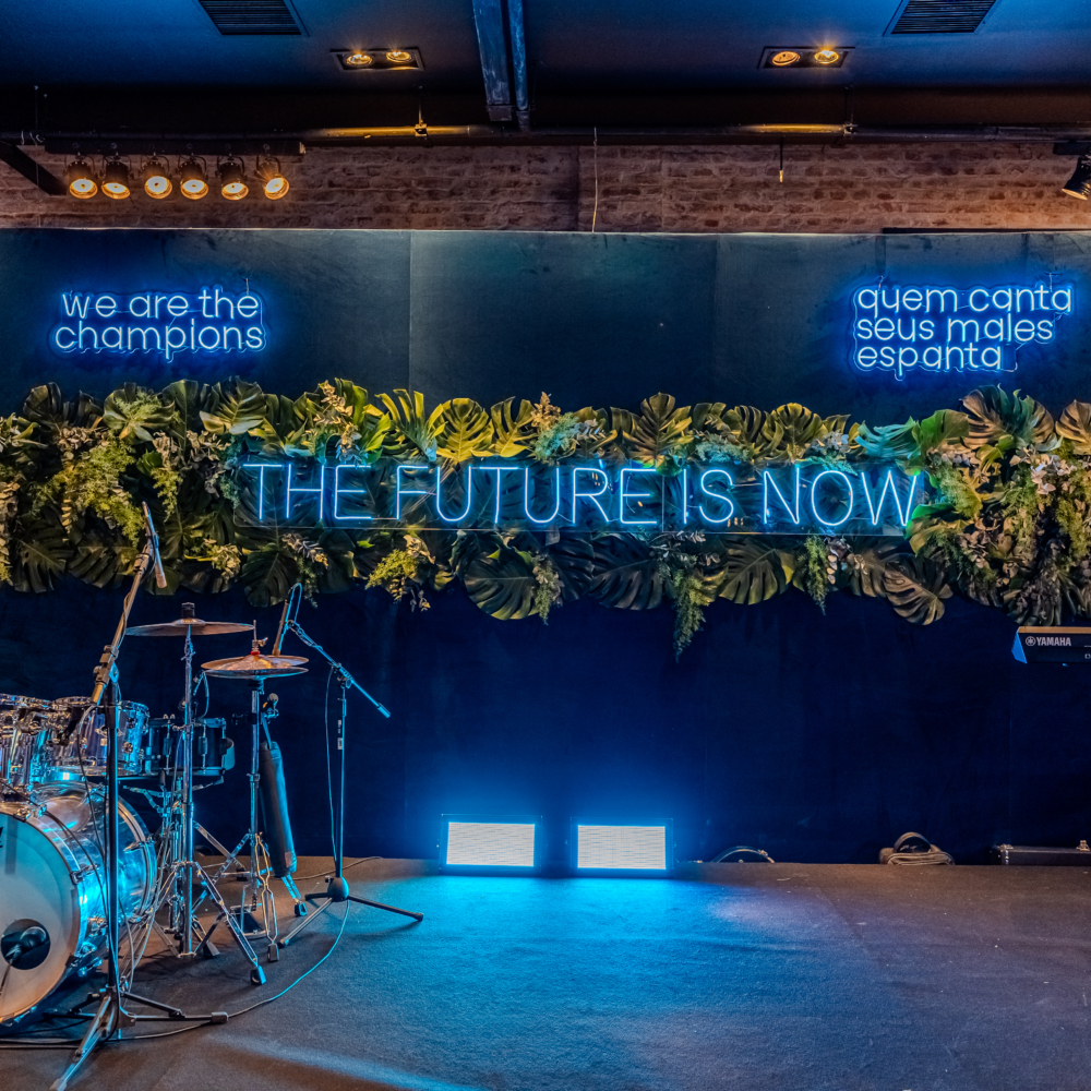 Projeto de audiovisual e cenografia para evento de apresentação de produto.
