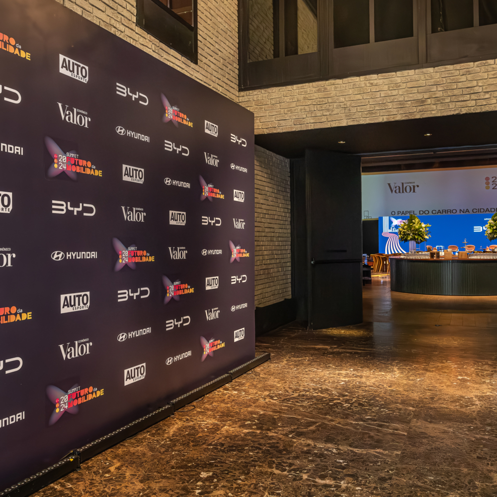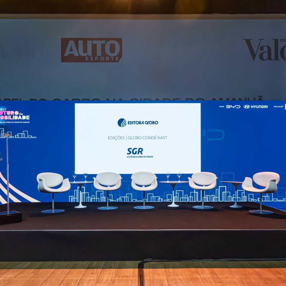 Projeto de audiovisual e cenografia para evento corporativo.