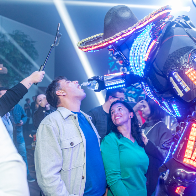 Ofereça uma experiência única aos seus convidados com nosso incrível robô tequileiro, pronto para servir suas bebidas favoritas enquanto você aproveita a pista de dança.