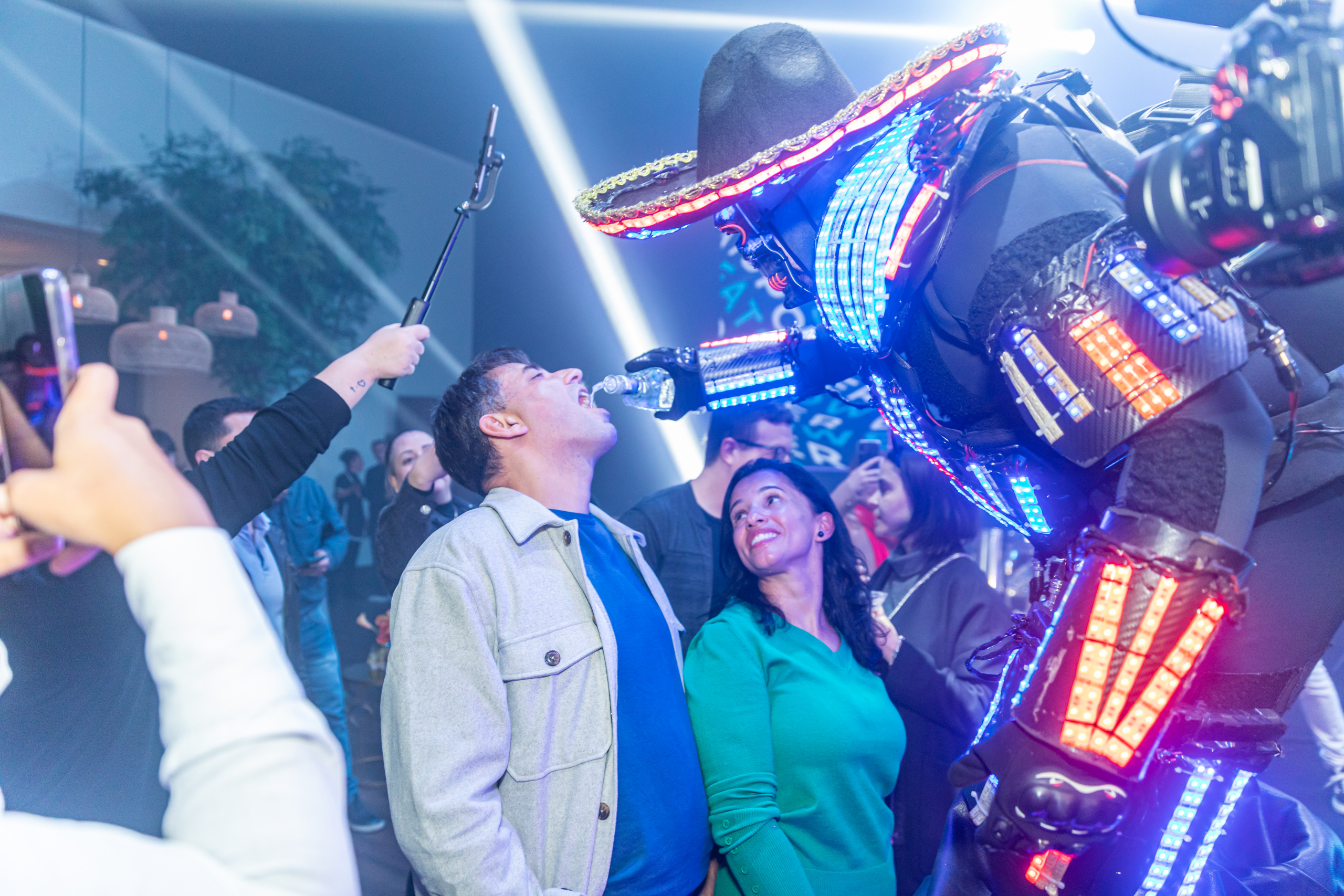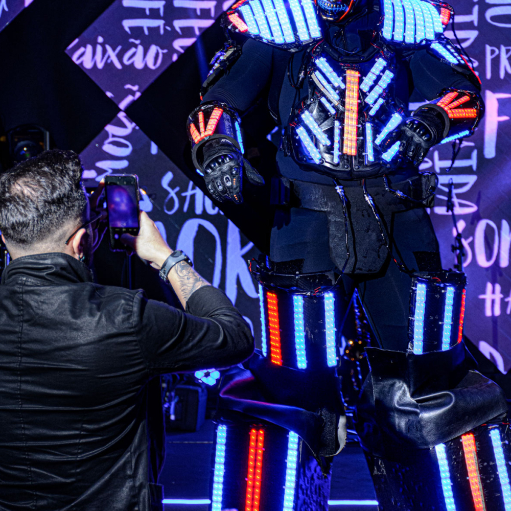 Ofereça uma experiência única aos seus convidados com nosso incrível robô tequileiro, pronto para servir suas bebidas favoritas enquanto você aproveita a pista de dança.