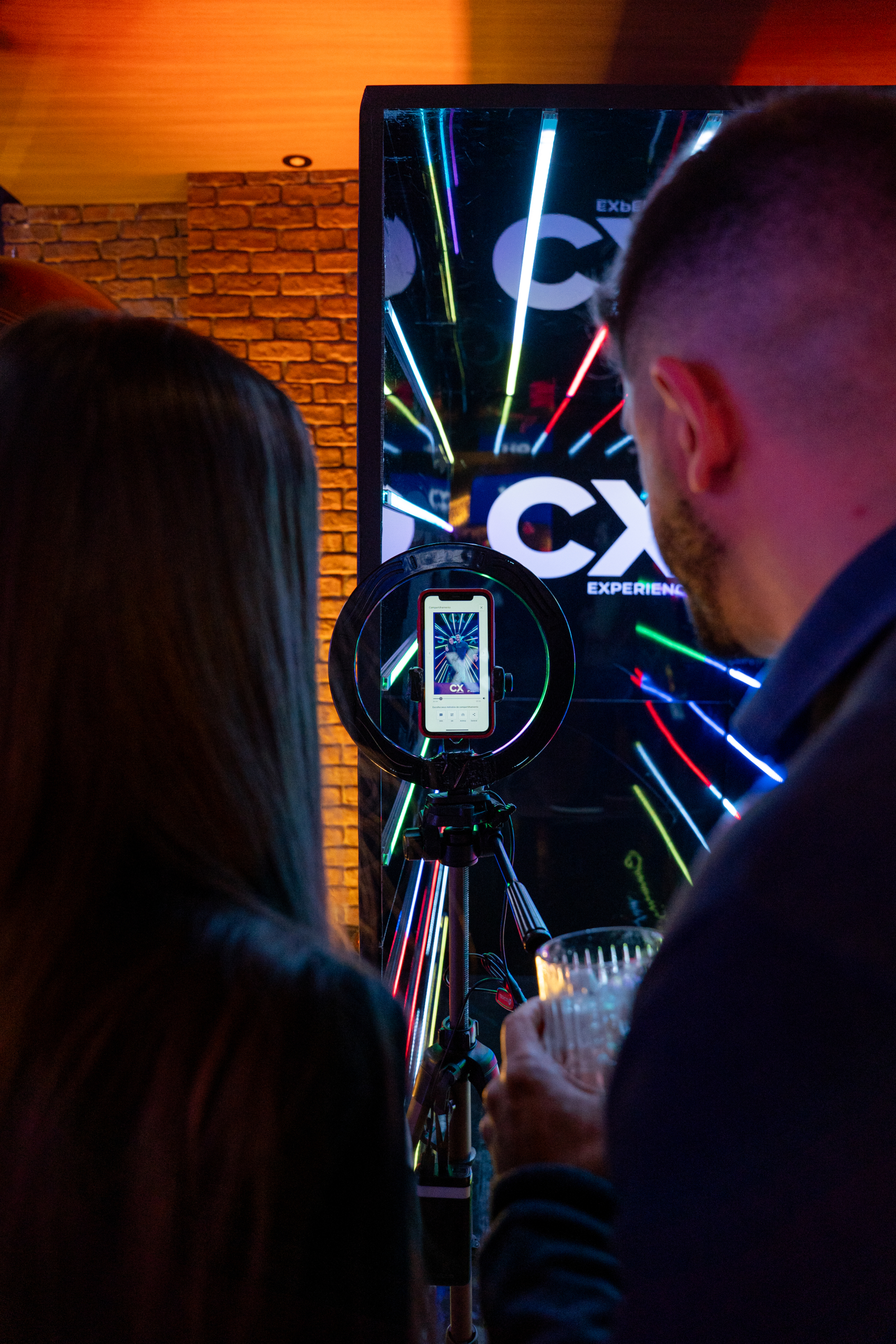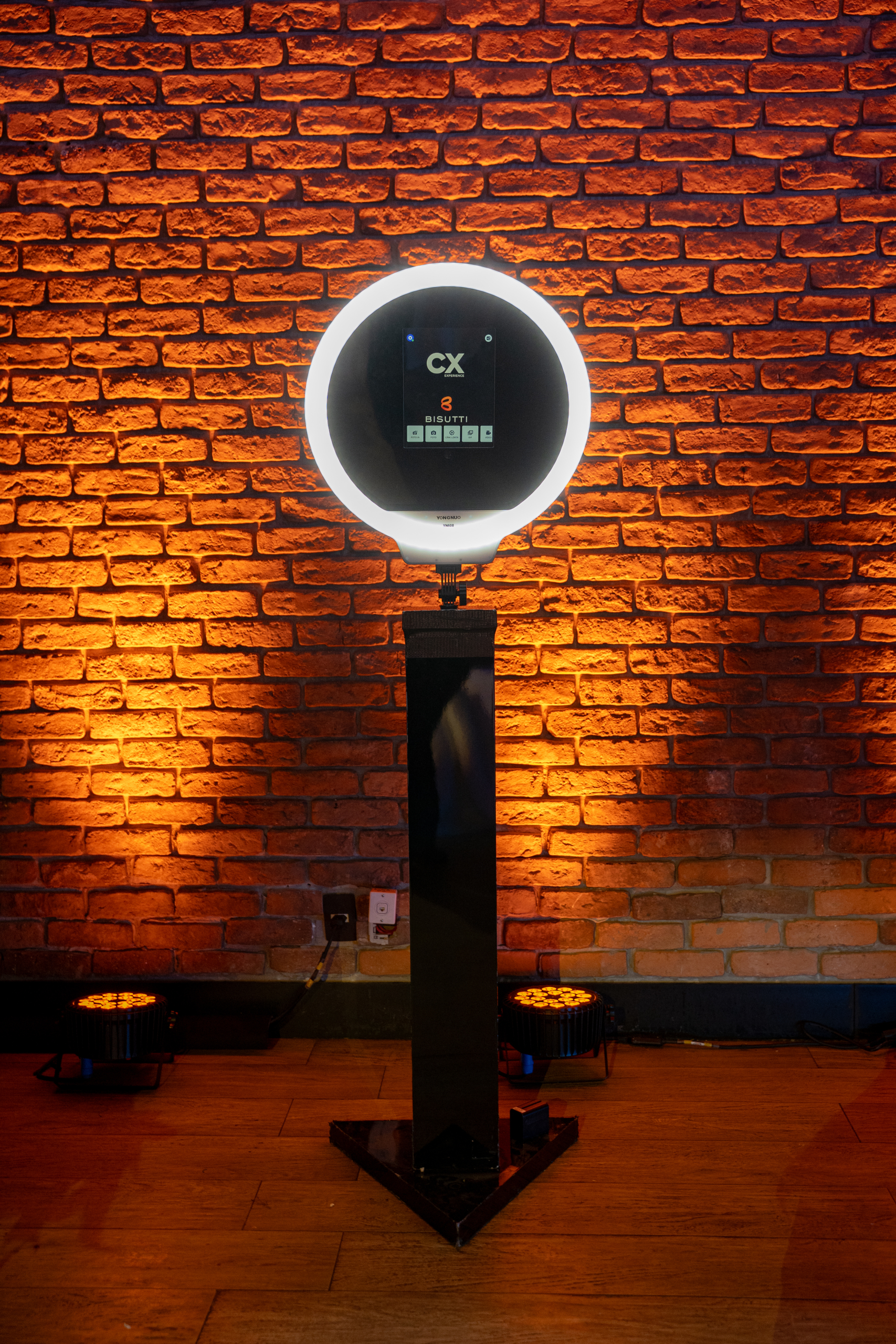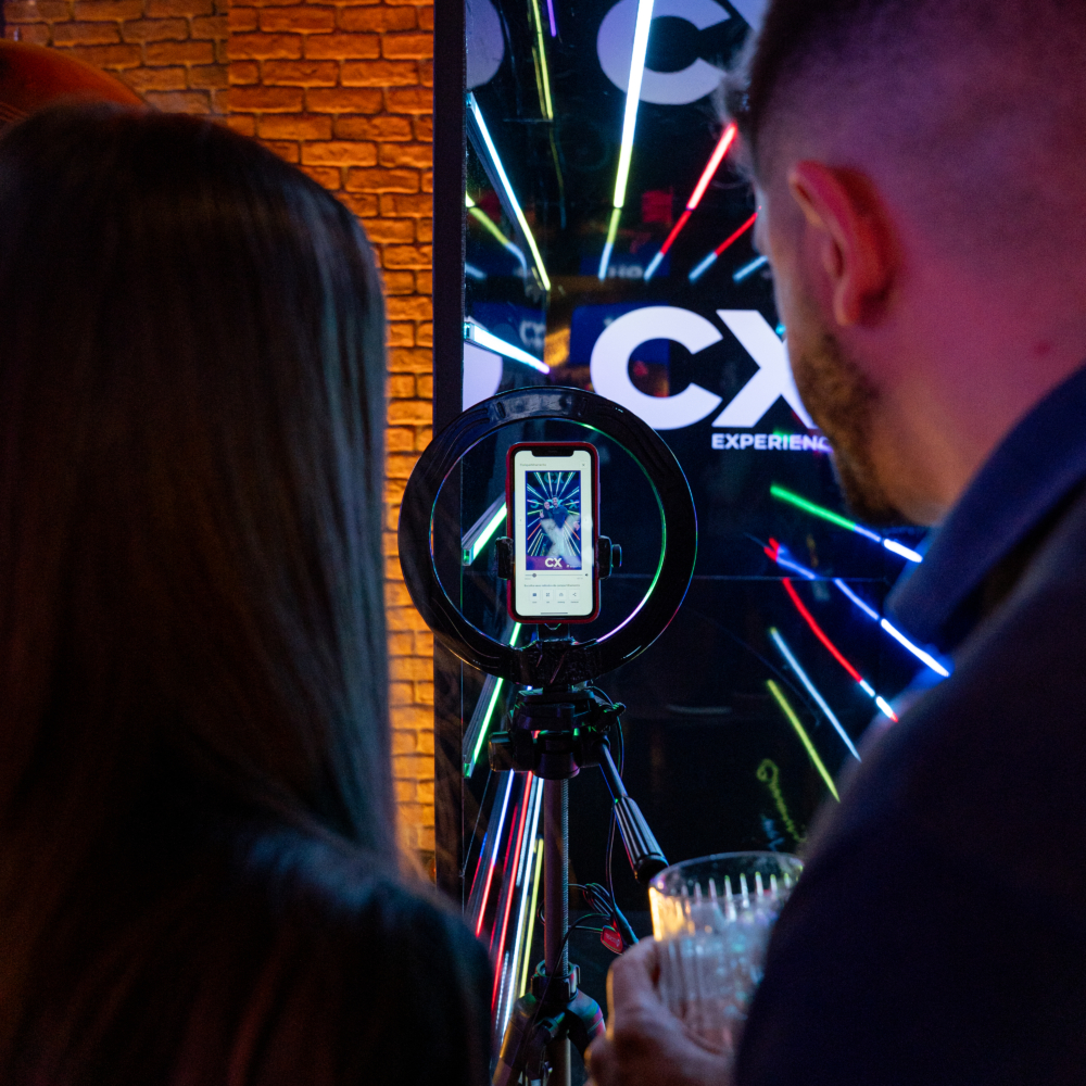 Ring light com tablet para fazer vídeos, receba os vídeos pelo QR code ou airdrop. Pode ser fixo ou móvel no evento.