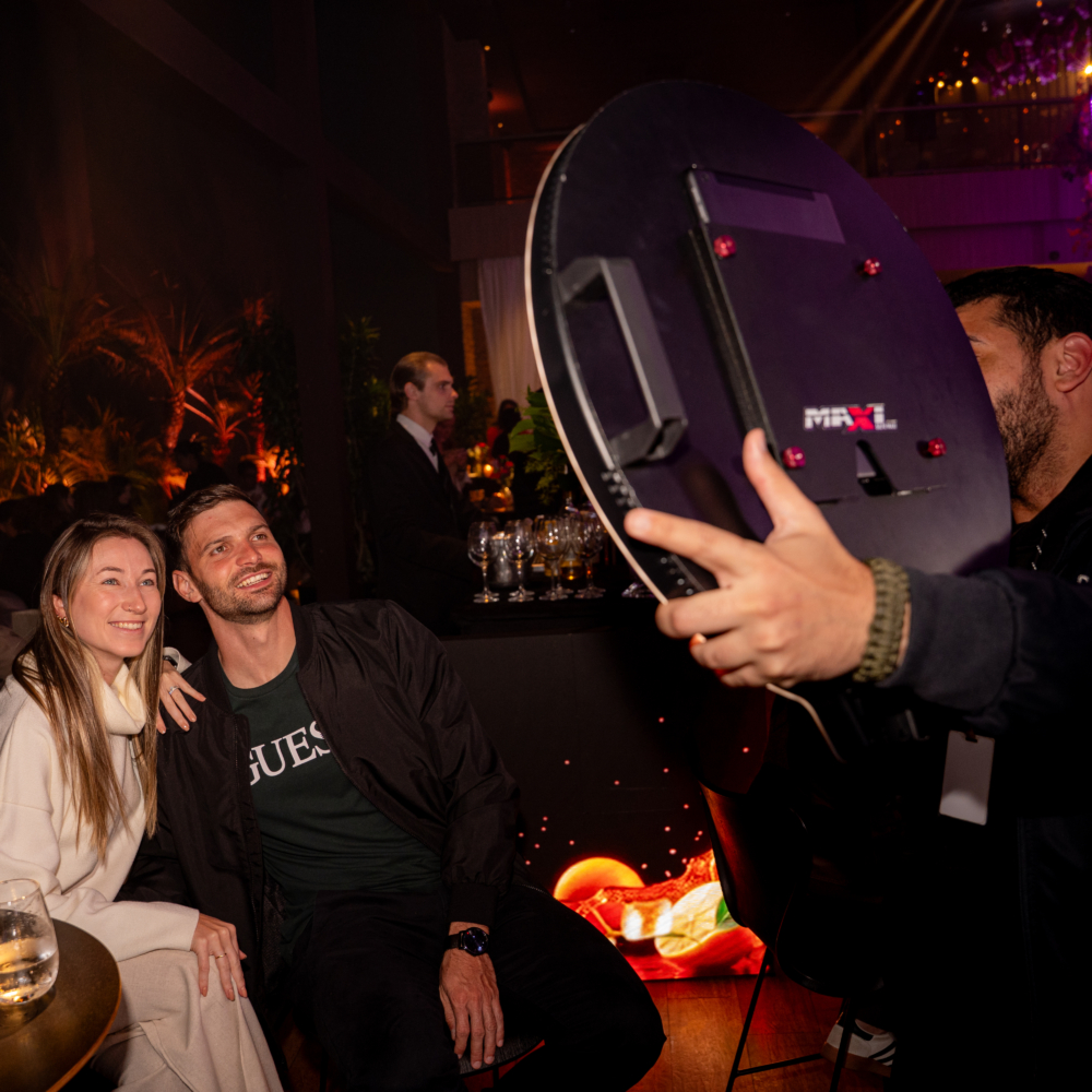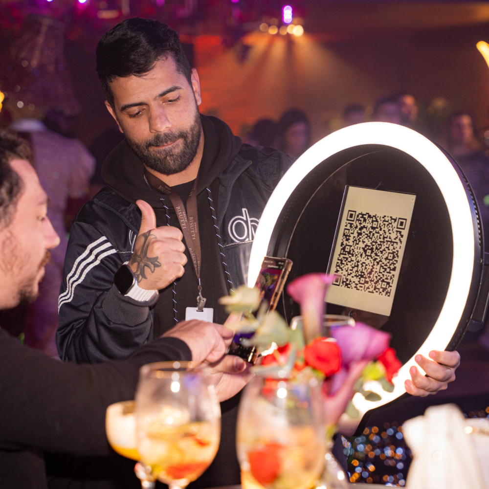 Ofereça momentos de diversão inesquecíveis com o selfie móvel, um dispositivo itinerante que percorre o evento e proporciona uma experiência interativa e envolvente para todos os convidados.