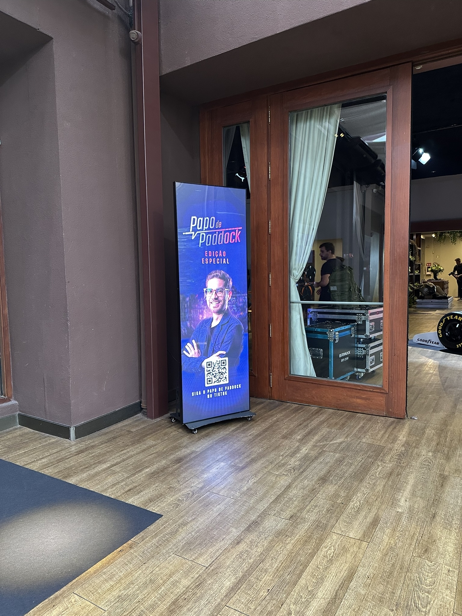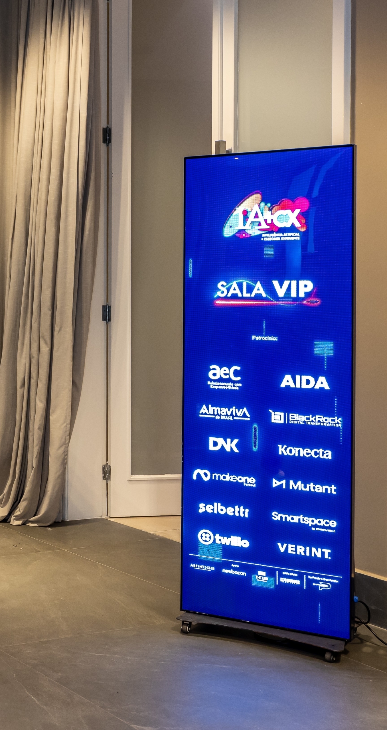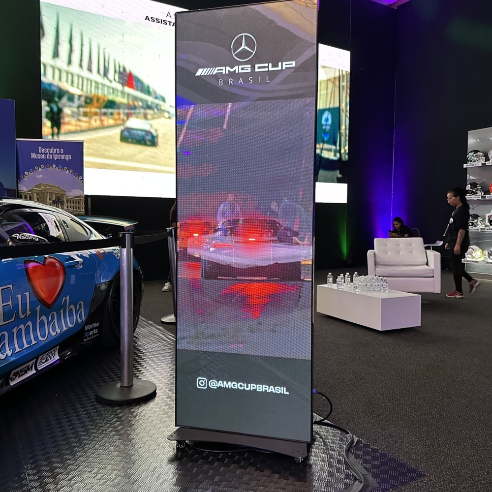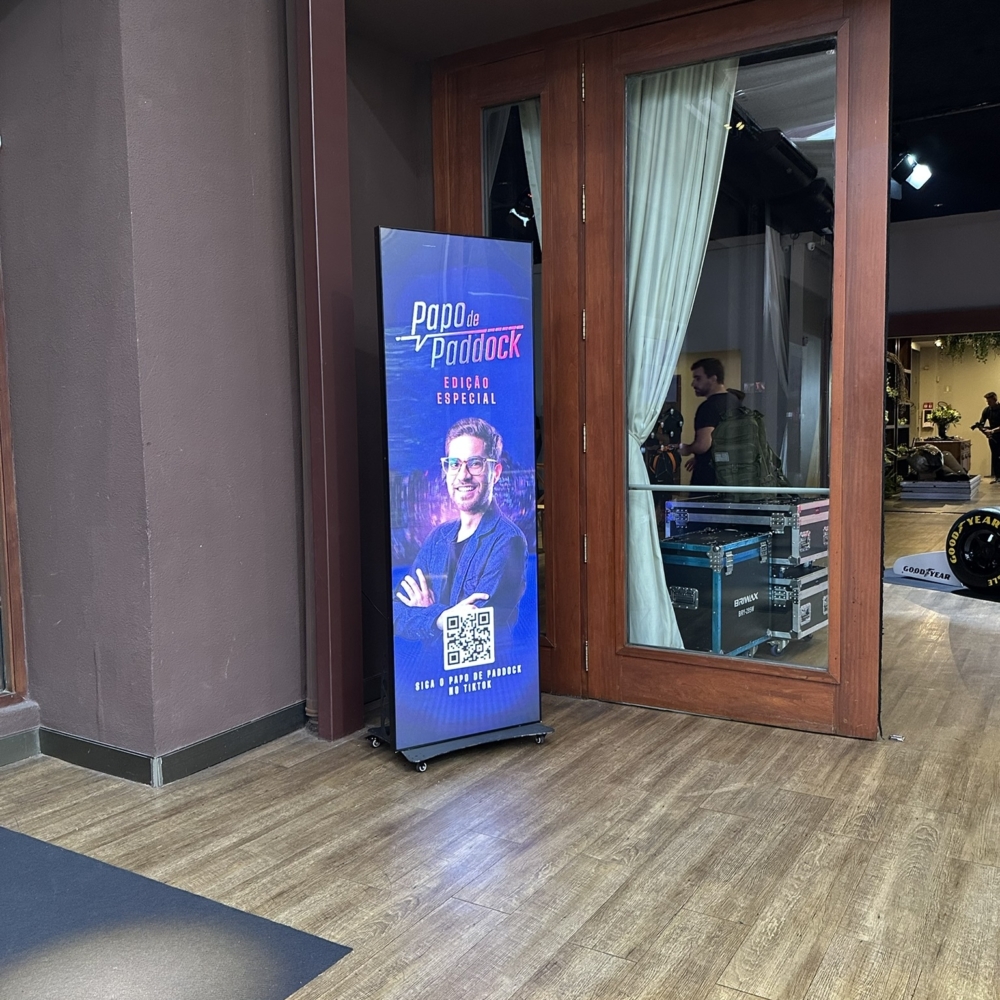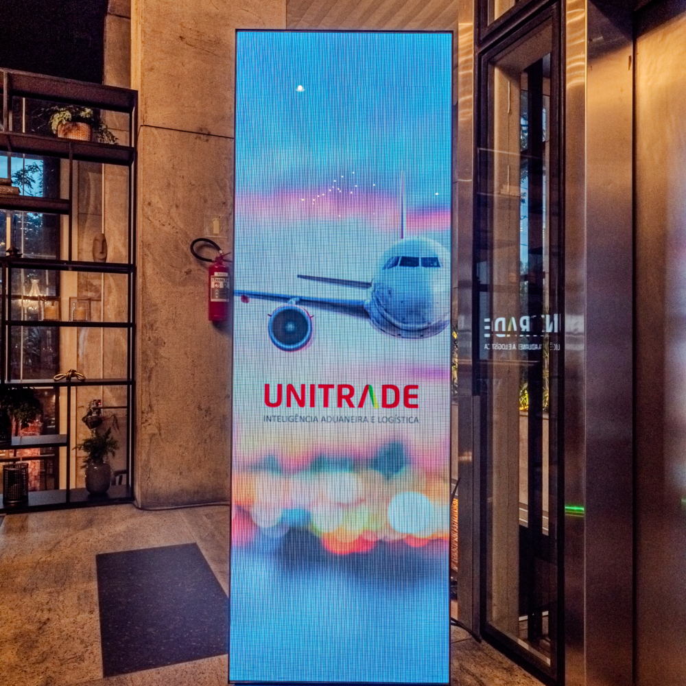 Com 1,90m de altura por 0,60m de largura, o Totem Painel de LED é a solução perfeita para destacar sua marca, mensagem ou conteúdo com elegância e tecnologia. Seu formato vertical imponente e tela vibrante garantem visibilidade em qualquer ambiente — seja em eventos, recepções, vitrines ou feiras.