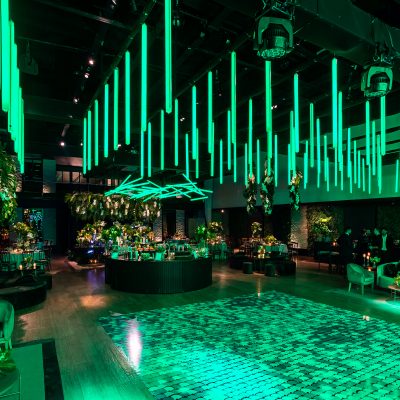 Caixa de LED para experiência dos convidados medindo 4m x 4m com tudo em LED.