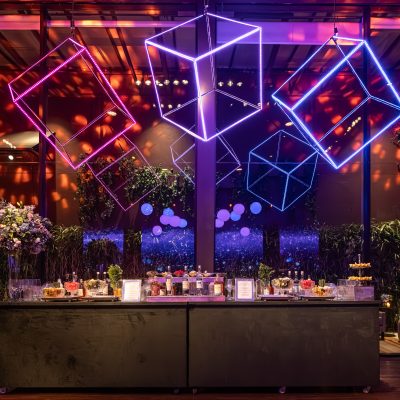 Bar premium feito de LED com conteúdo em vídeo animado da bebida oferecida nessa ação, como Lillet ou Gins, Vinhos, espumantes, outras bebidas, etc