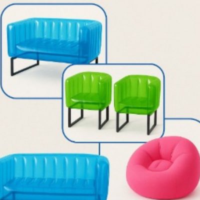 Descrição: Lounge composto por 1 sofá de 2 lugares colorido inflado, 2 poltronas coloridas infladas e 2 pufes inflados....